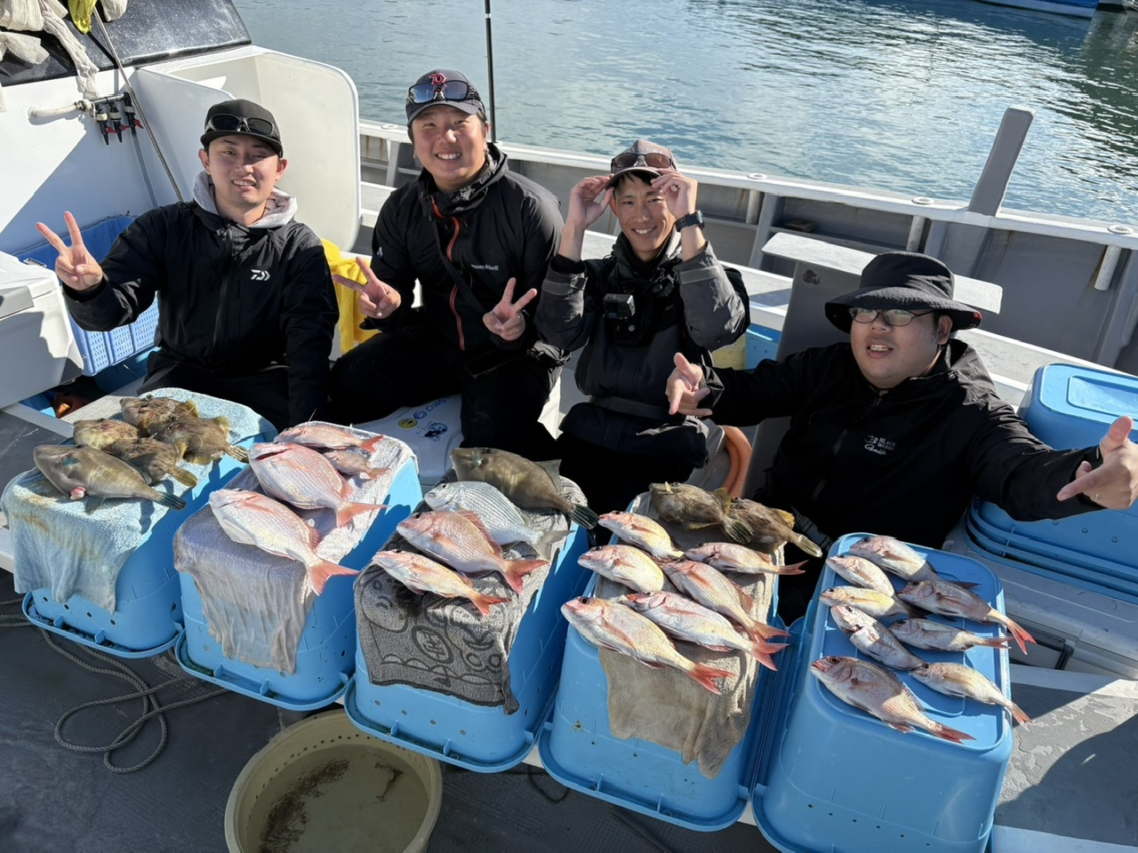 三河メンバーで一つテンヤに行って来ました♪お世話になったのはチ片名出船の忠栄丸さんです。この日は朝から伊良湖沖に向かいましたが中々魚が口を使ってくれず苦戦しました。最初のポイントが芳しく無かったのでポイント移動して水深が少し浅い砂地のエリアに到着すると当店柴田さんの竿が曲がっているのをみているとこっちかにもヒット!一発目はチダイでした♪ポイントがかわると餌取りも多かったですがボトムに到達を感じ、次に出るアタリに集中して数を伸ばす事が出来ました♪30cm位迄の数釣りとカワハギをオマケに釣って終了です。今回使用したテンヤはハヤブサさんの一つテンヤをメインに使用しました♪一つテンヤはゲーム性も高くマダイ以外にも色々な魚を狙えるのも魅力です♪12月初旬までやられるそうなので興味のあるお客様は是非行ってみてくださいね♪