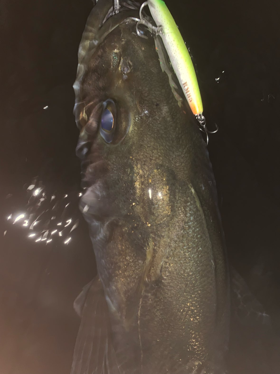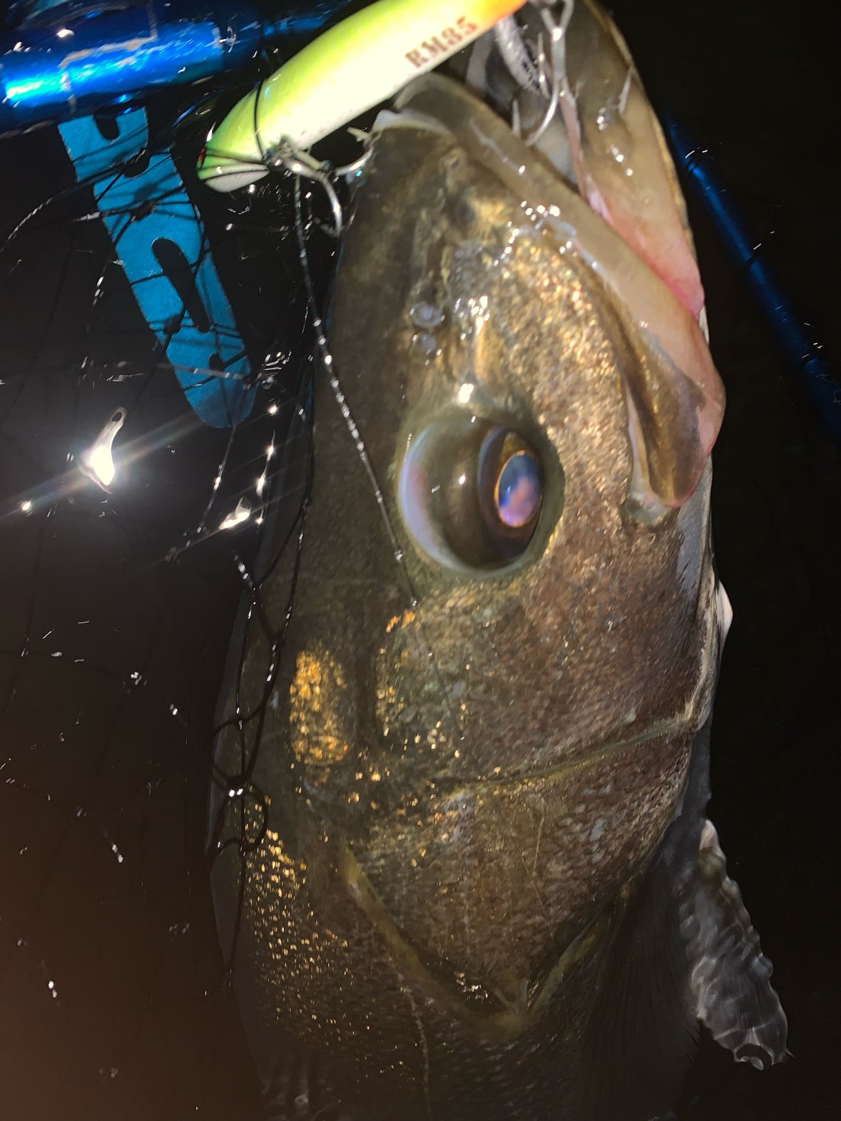 レンジマスターの85で1匹目がヒット。アワセでロッドが止まる。またデカい!ゴリ巻きで寄せてキャッチ。80cmチョイのランカー。