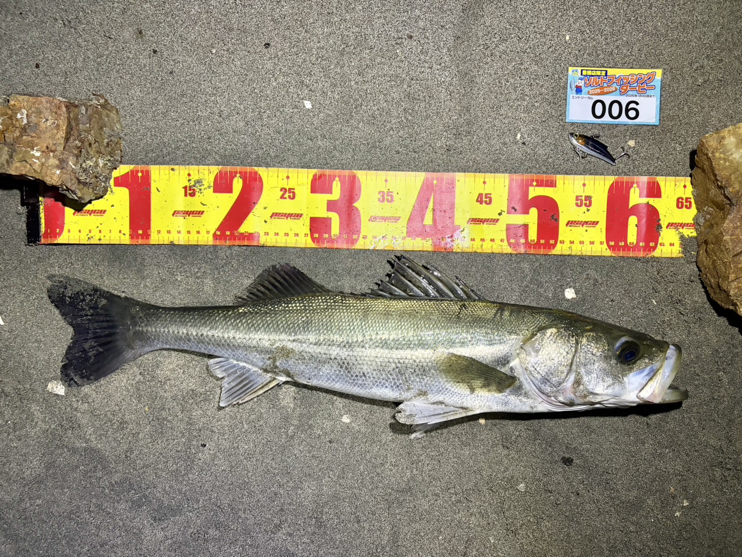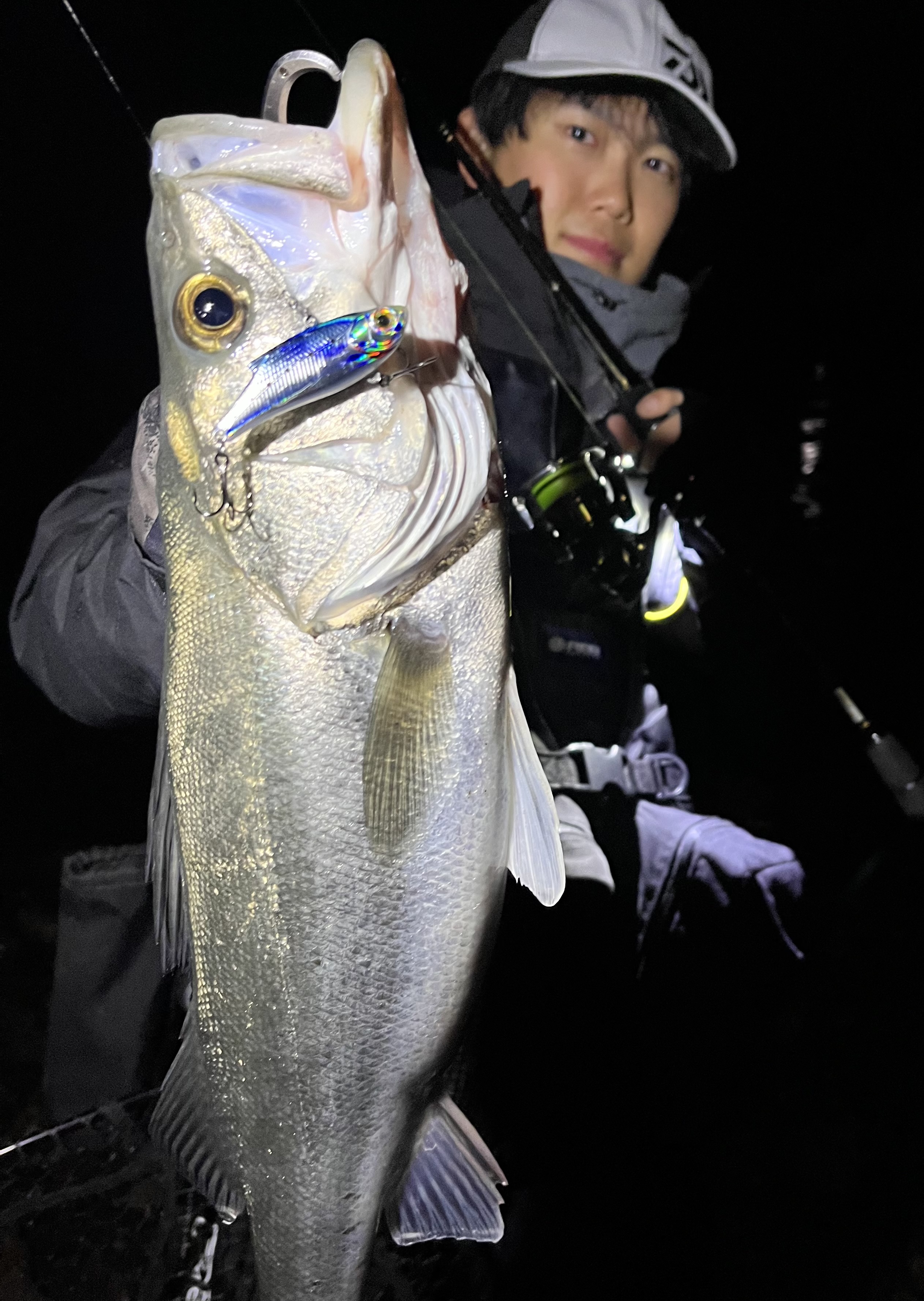 同行者が釣ったポイントに流させてもらうと持ってかれるあたりがあり、なんとか64センチのシーバスを釣ることができました。