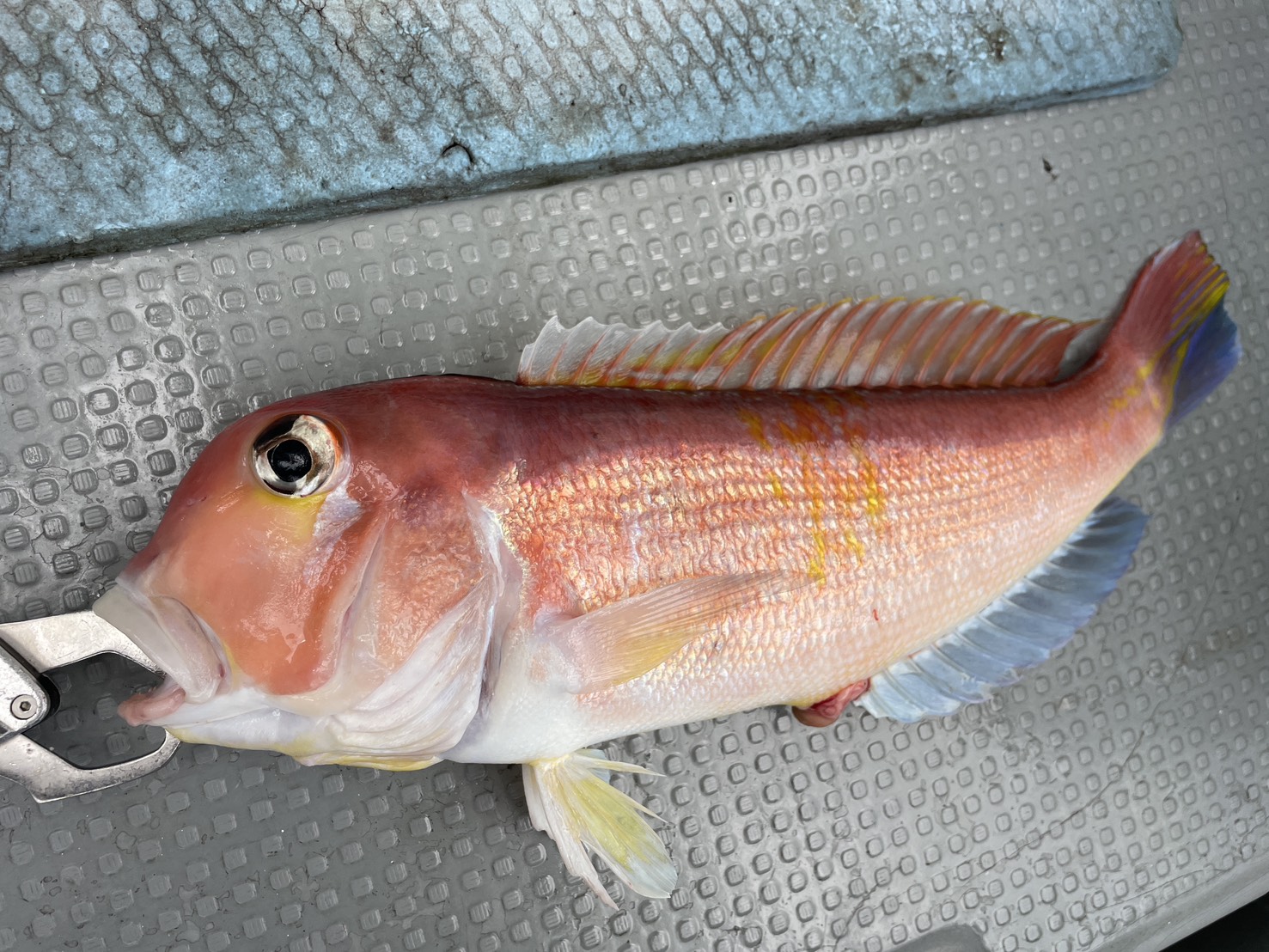 今回は尾鷲天満浦出船のゴールデンイーグル様にお世話になり、ジギングとタイラバを楽しんでいきました。この時期から北西風が吹き出船できない船もちらほらある中、尾鷲の海域では風を避けることが出来るため、高確率で出船することが可能です。朝6時頃出船して、80mラインのポイントでスタート。使用するロッドはメジャークラフト様の【ジャイアントキリングBENDGAME】と【レッドバックBENDGAME】です。両方メジャークラフト様の新製品ロッドでフルソリッドのモデルとなります。魚をかけてから竿がしっかりと追従してくれるので、バラシが軽減します。まずはジギングで底物と回遊魚の一発デカい魚を狙っていきます。使用したジグはメジャークラフト様の【ジグパラ バーチカル クウェル】です。ホバリング性能の高いジグで、細かくタナを刻んでいき、フォールで長時間魚にアピールすることが出来ます。開始2投目でフォールで切られてしまいました。おそらくサワラ・サゴシかと思います。開始直後からフォールでのアピール力を見せつけられました。その後は潮が緩んでしまい、エソ祭りでしたがポイントを移動しながら、船中サゴシやシイラ、ハマチ、真鯛等が釣れました。休憩と称してタイラバにチェンジ。使用していくタイラバはメジャークラフト様の【鯛乃実TGハイブリット】です。TGを鉛で包んでおり、TGと鉛の良いとこどりをしたタイラバになります。水深103mのポイントで180m程ながし3秒1回転くらいのスピードで巻いていくと、【ゴツゴツっ】とアタリが。巻きながらゆっくり竿をあおって合わせて巻いてくると、結構な重量感。フルソリッドの追従の力を活かしながら、ゆっくり巻いてくると40㎝を超える良型の甘鯛でした。船中他には真鯛やレンコ鯛等がタイラバで釣れていました。尾鷲の海は魚種も豊富で時には怪物級の魚がかかる時もあります。是非狙いに来てください。