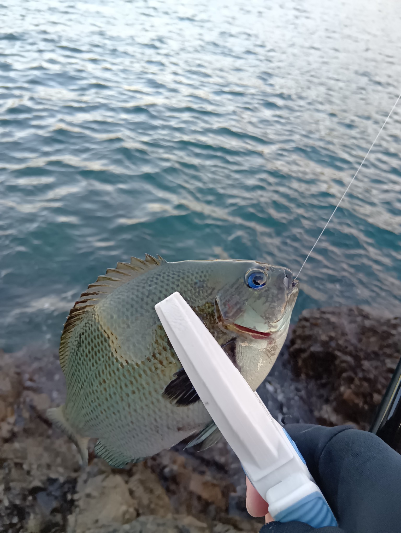 1投目ですぐにアタリがあり25cmほどのグレ。ウキがゆっくりと沈んでいく合わせると35㎝ほどのブダイ。