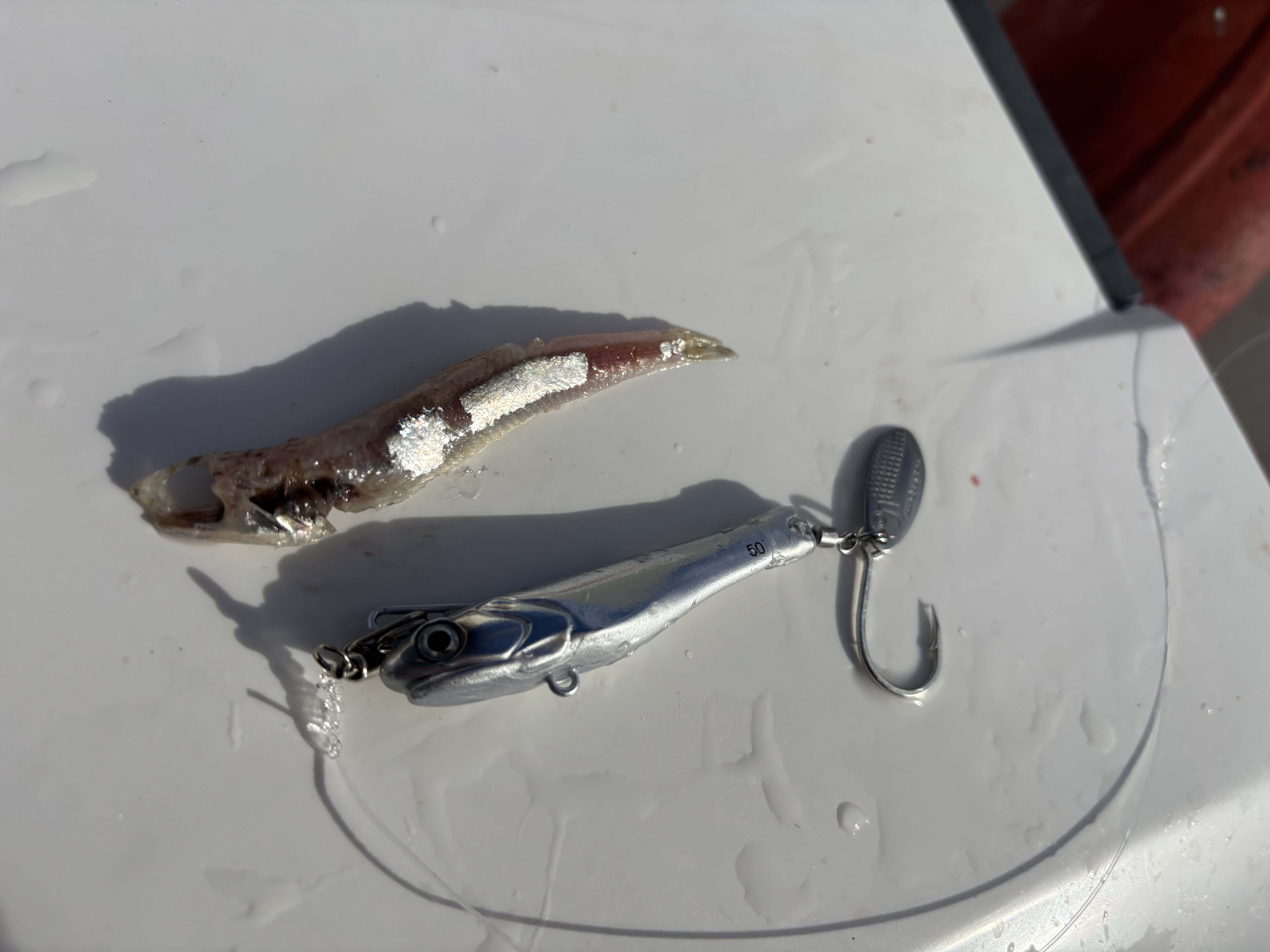 2時間勝負の 勝手に海太郎実釣会〜サカナサカナスピンで釣ろう〜🐟とゆう事でサカナサカナスピン縛り!潮が速く50gスタートで序盤からサゴシHIT‼️吐き出したベイトがドンピシャマッチザベイト!中層でも反応多く、40gでハマチもキャッチ‼️船長は60gで連発もバラし…ラスト15分で追加1本!