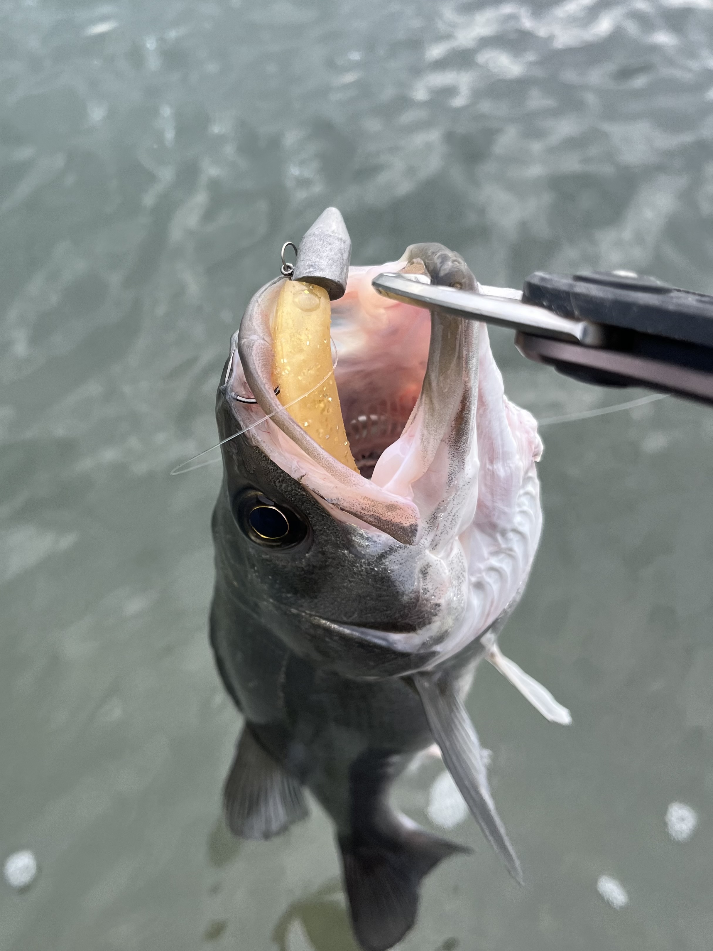 数投目にフォールでバイト!フッキングした瞬間エラ洗い!50cmほどのシーバスをキャッチ!