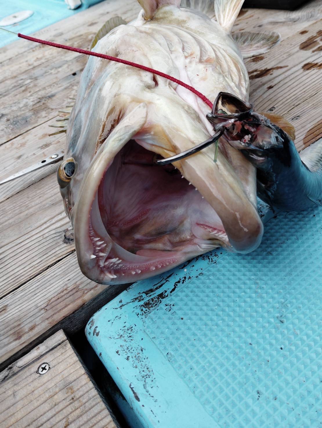 その1投目にてヒット!ウツボとは違うロッドのしなり方で上がってきたのは・・・本命のクエでした!!