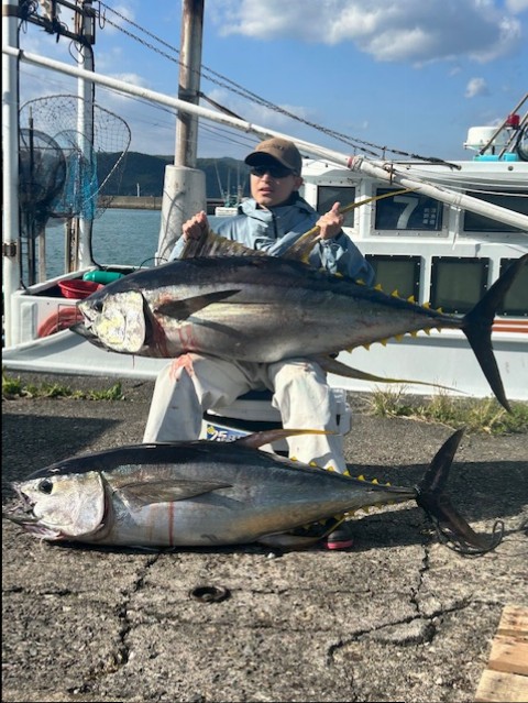 今回も2日間の釣行をしてきました。お世話になったのは、フィッシング隼・隼人船長。まずは1日目。このところあまり釣果の良くない潮岬沖を敬遠し、東のポイントへ。ソナーを見ながら魚影を探して走ります。反応は上々。しかし、シイラとサメに邪魔され続け、ラインブレイクも数名…。そんな中、ミヨシの釣り座の方にヒット!慎重に上げたのは50㎏超えの良型のキハダでした。その後もサメとシイラのヒットが続きますが、そんな中またしてもミヨシの方にヒット!またまた良型キハダ!この日は終始この方の一人劇場でした。この日は充分に睡眠をとり、次の日を迎えました。
