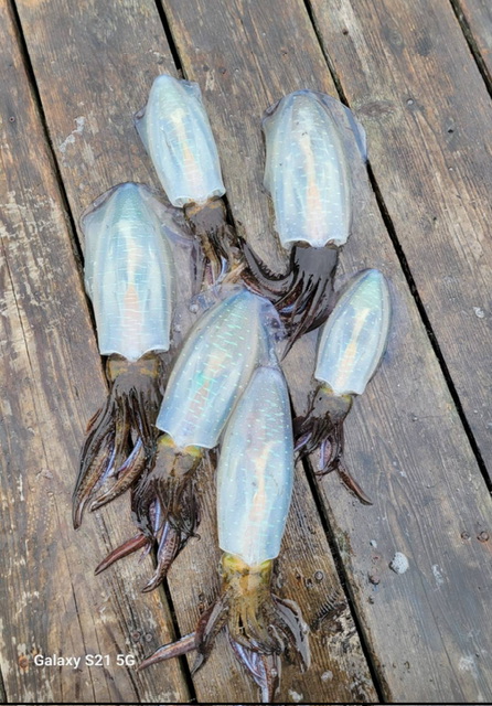中々当たらなかったが、漸く私にも当たり 7 0 0グラムぐらいのアオリイカが掛かった。