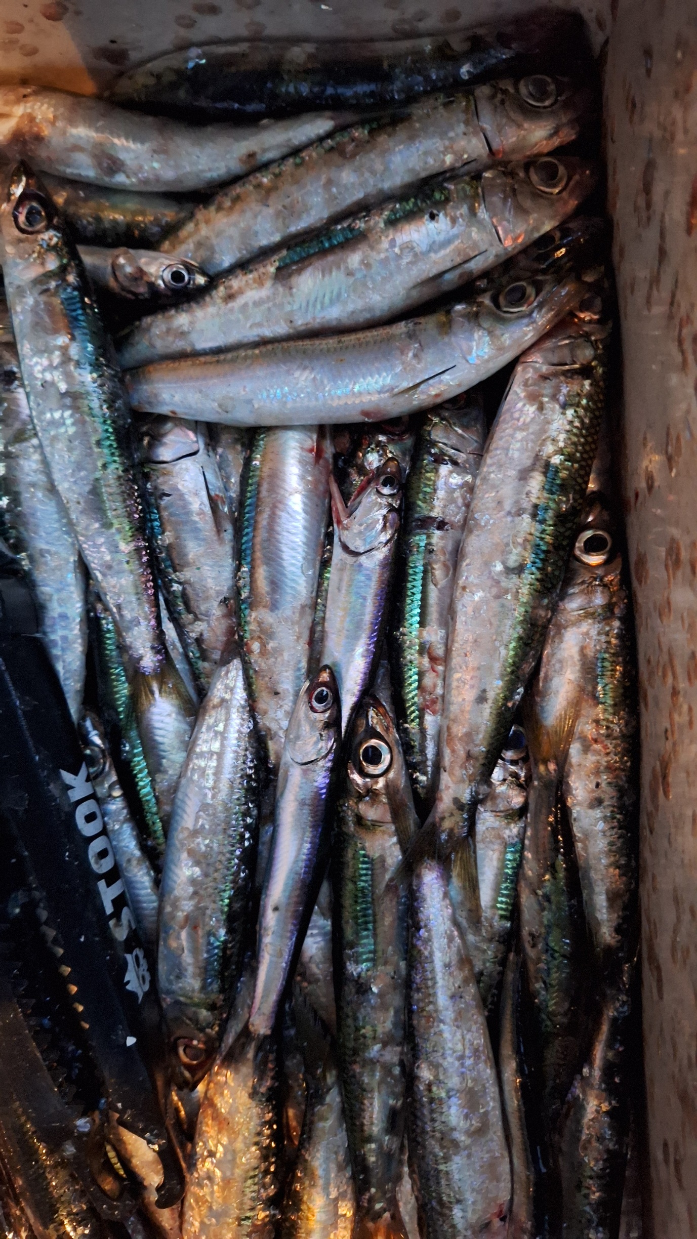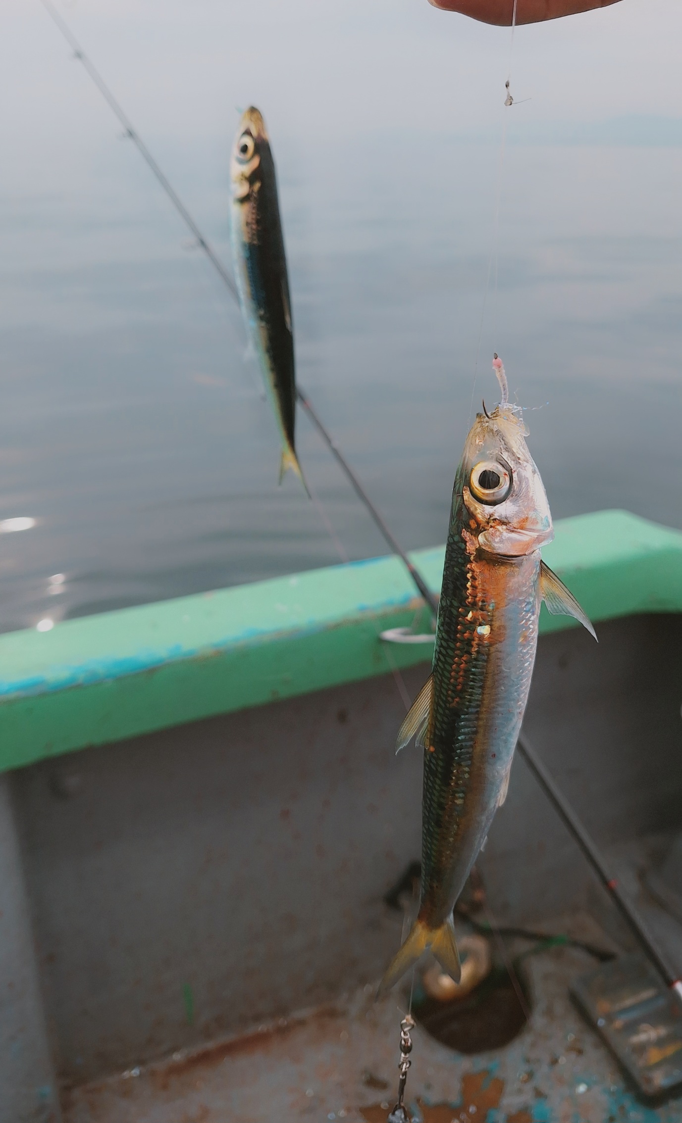 魚探は真っ赤!6本バリ全てウルメイワシが付きました。