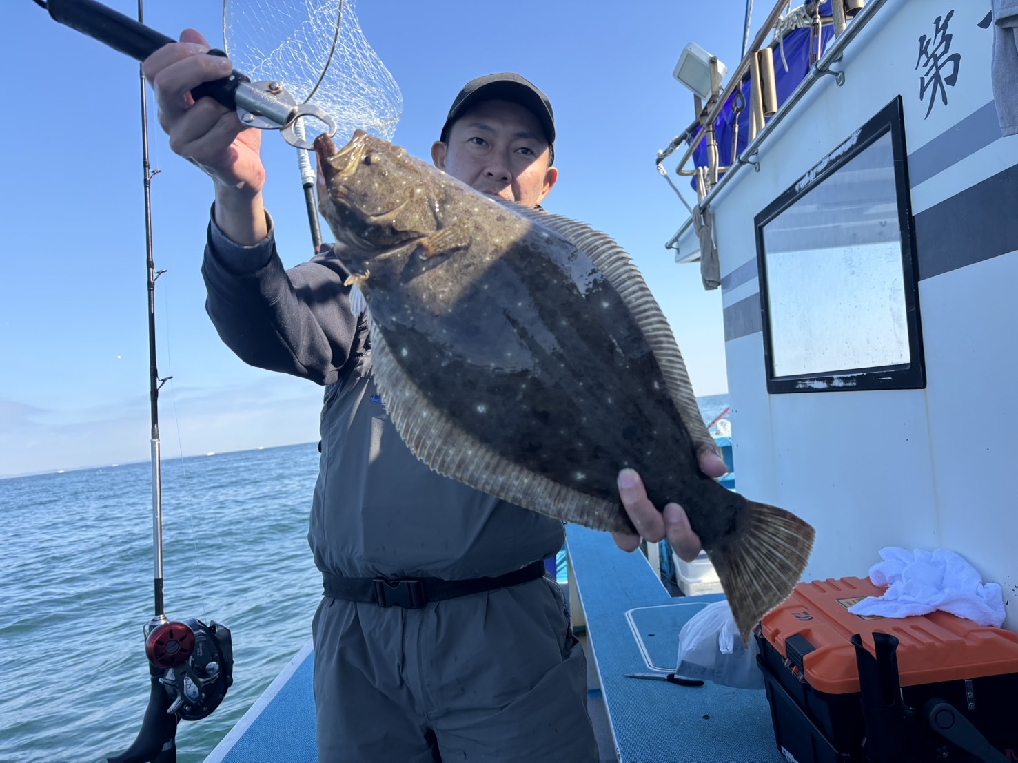 早速釣りスタートすると同行者にヒラメ!続けて私も良型キャッチ。