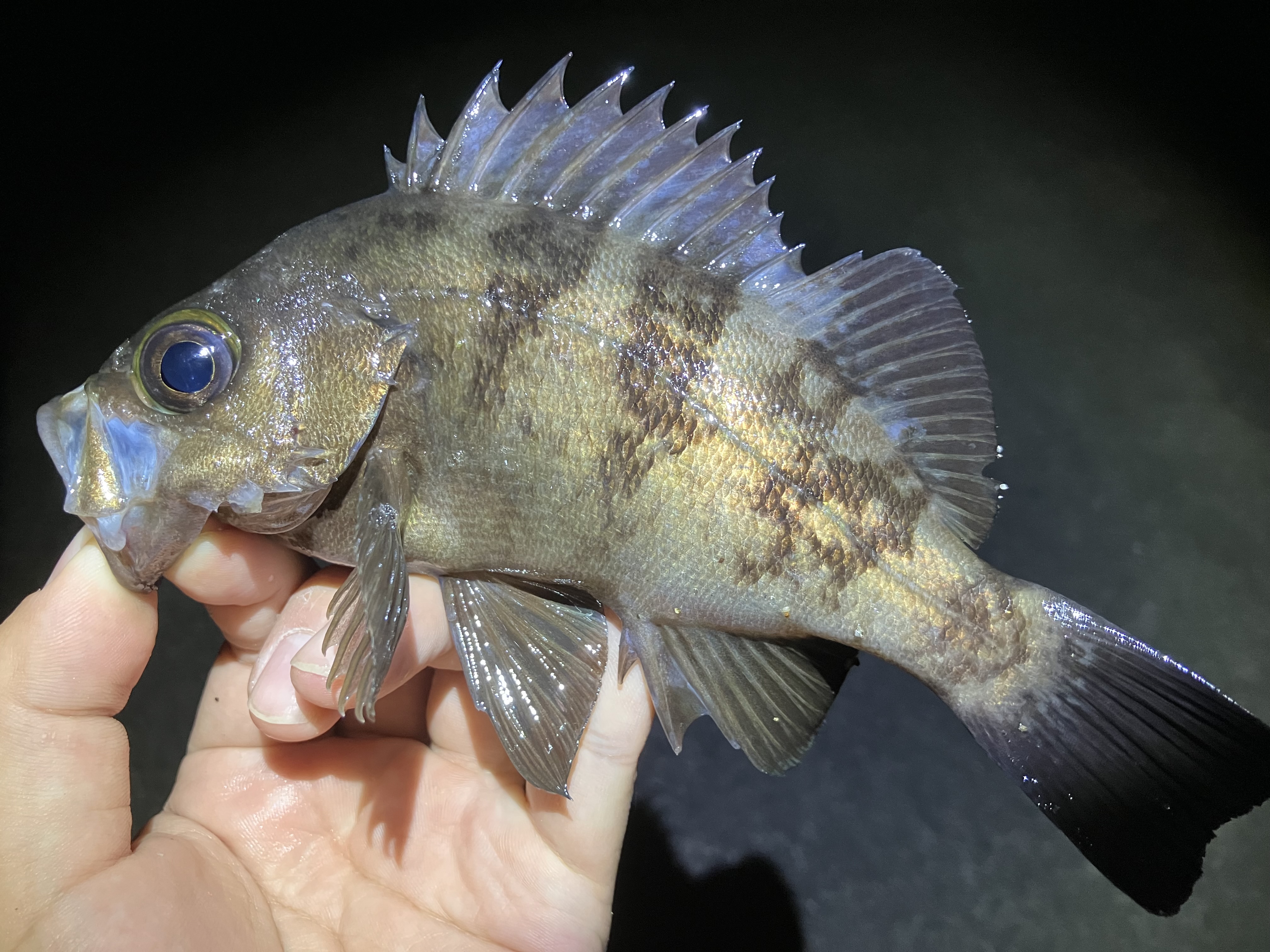 正体は20センチを超えるプリプリのメバルでした!エステル2ポンドの細糸で何とか取れた〜!