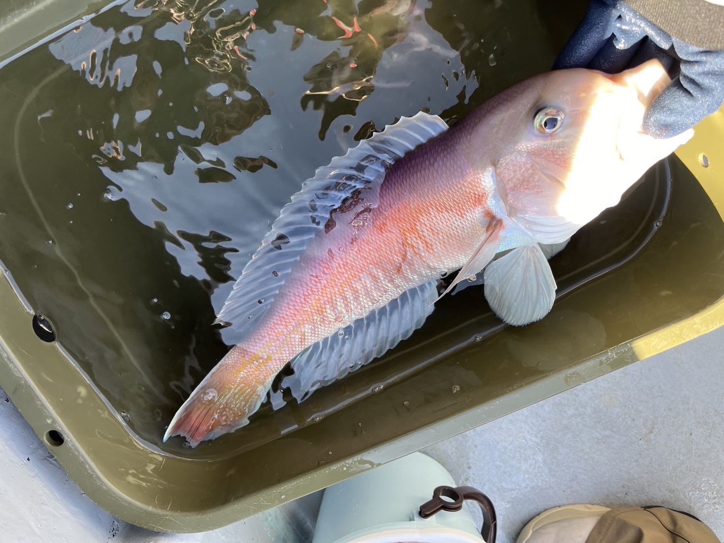 初心者様本当に頑張ってくれました、初心者で高級魚のシロアマダイを釣れて本当良かったです!!