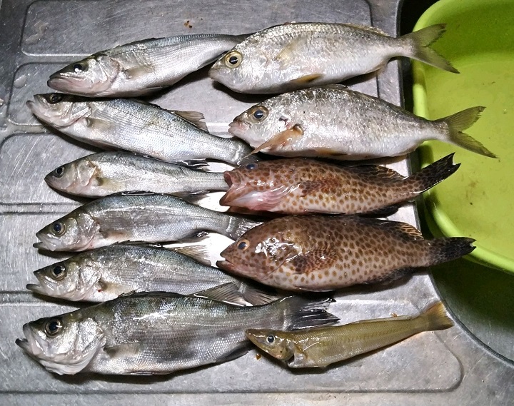 一晩目の釣りを頑張り過ぎたので午前11時から開始して風も弱くTシャツでも釣りが出来るぐらいの陽気なのですがアタリは少なく釣れてもチャリコにチビオオモンハタそしてラストにはキタマクラで移動します。次の場所ではアタリも無くエサすら取られないぐらい、広く探っていると イイアタリでキスが釣れますが他にクロサギ中が釣れてラストはキタマクラ・・・一応ヘダイも釣れましたが 釣りやすい良い天気だと魚の反応は悪くなるのか???悩む釣りになりました。