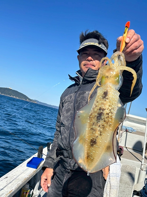 ラスト30分はおつまみプラス1品“バーチカル・ティップラン”。ティップランナー+30gシンカーで狙うと…1キロアップの丸々アオリイカ が登場船が空いていて船長の了解があれば、帰り際に“お土産プラス1品”もアリです