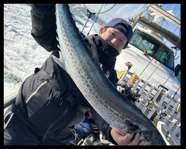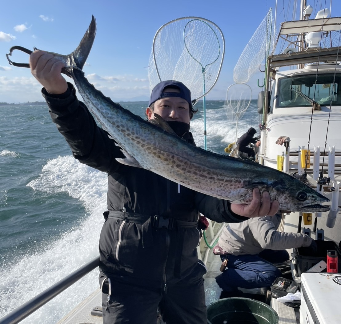 今度はしっかりとフッキングをして巻き上げていると他の方とのお祭りでバラシも覚悟したが、船長の迅速な対応で何とかランディング成功して4.3kgの良型サワラをキャッチする事ができました!!最後まで諦めずシャクってて良かったなと思い、これで満足してこの日の釣行は終了となりました。
