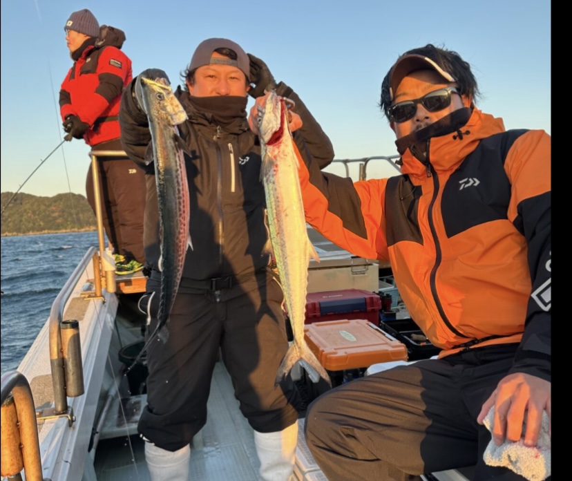 鳥羽のks漁盛丸さんへ青物ジギングに行ってきました!この日は大風予報で状況的には厳しい。朝イチは湾内でスタートしました!さほど風は強くなく、まだ釣りはしやすい状況だったので早目に釣っておきたいと思っていたが、潮も動かずジグをシャクっていてもスカッスカの悪状況でした。だが予想に反して2流し目ぐらいから船中でポツポツと釣れ出し自分にも早速ヒット!!