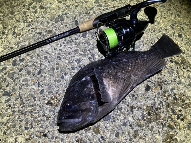 上がってきたのは35センチの良型クロソイ!狙い通り釣れて嬉しいです(o゚▽゚)