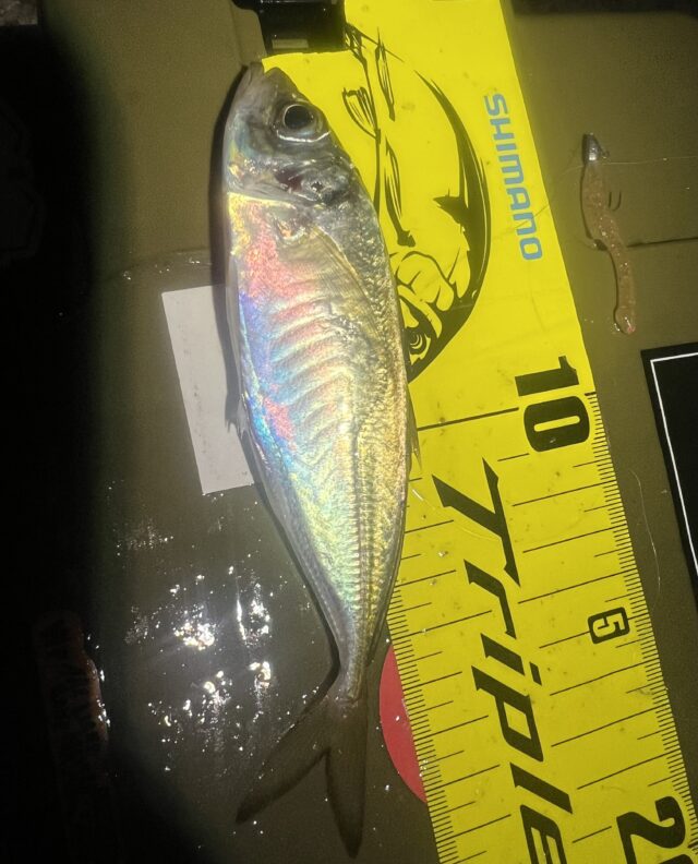 この日も知多アジングに行ってきました。風がほとんどなく過ごしやすい気候の中いつものポイントで釣り開始。序盤は潮位が低かったため0.6gでゆっくりと探っていきますが反応はなし。手前によっていないと考えて1.0g、1.2gと重さを上げていきました。レンジキープや巻き上げだと反応がなかったため、あえて潮に乗せながらゆっくりと巻き下げて行くと沖の方であたりが!そのやり方で続けていくと15~17センチのアジが釣れました!その後は反応が鈍くなりポイントを移動するも反応は得られませんでした。水温がかなり下がりはじめましたので、メバルの調子も上がってきそうですよ!ぜひ行ってみてください。