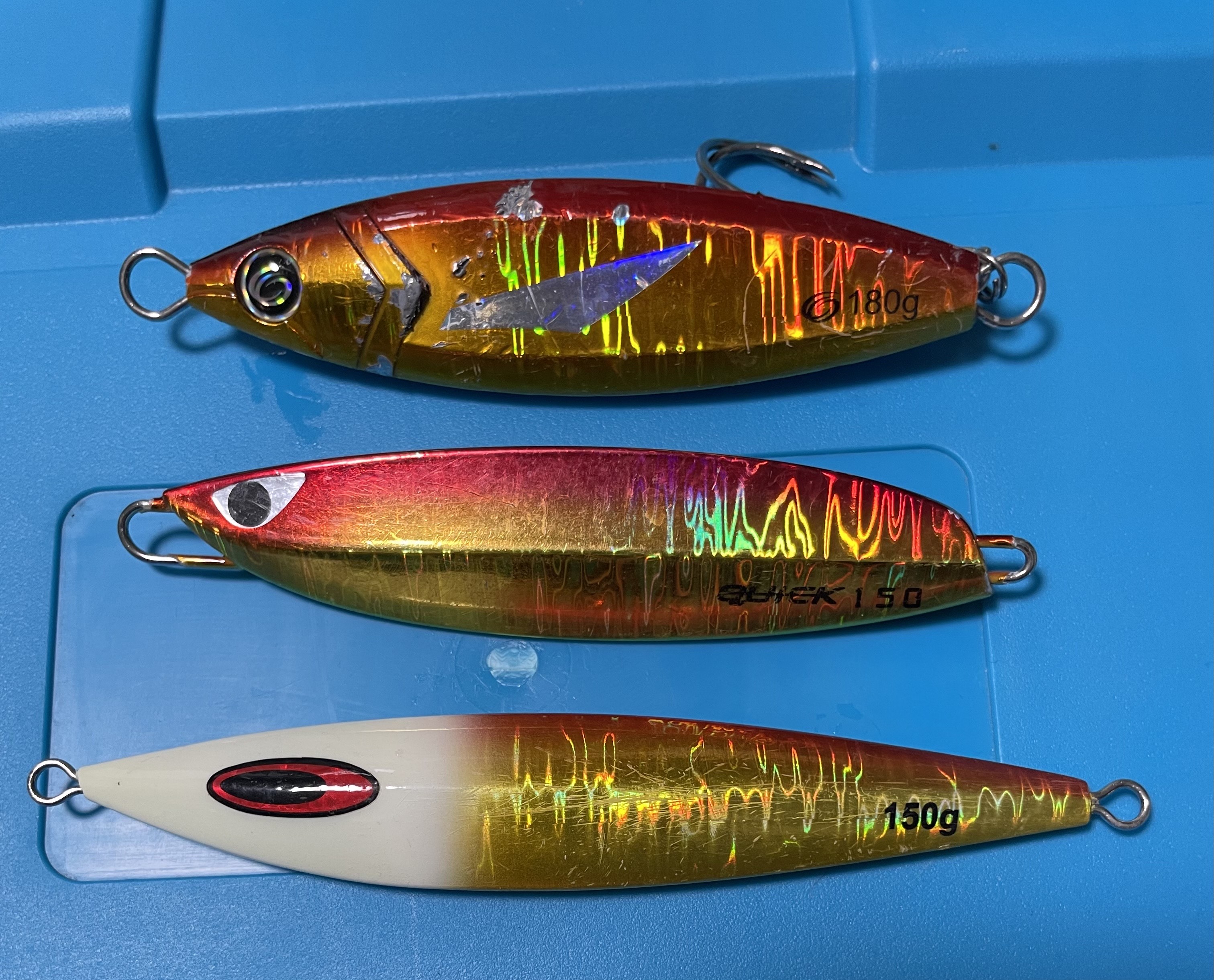 カラー、しゃくりや巻きスピードも入れると書ききれませんが中でも3種のジグが安定して釣れやすいです。