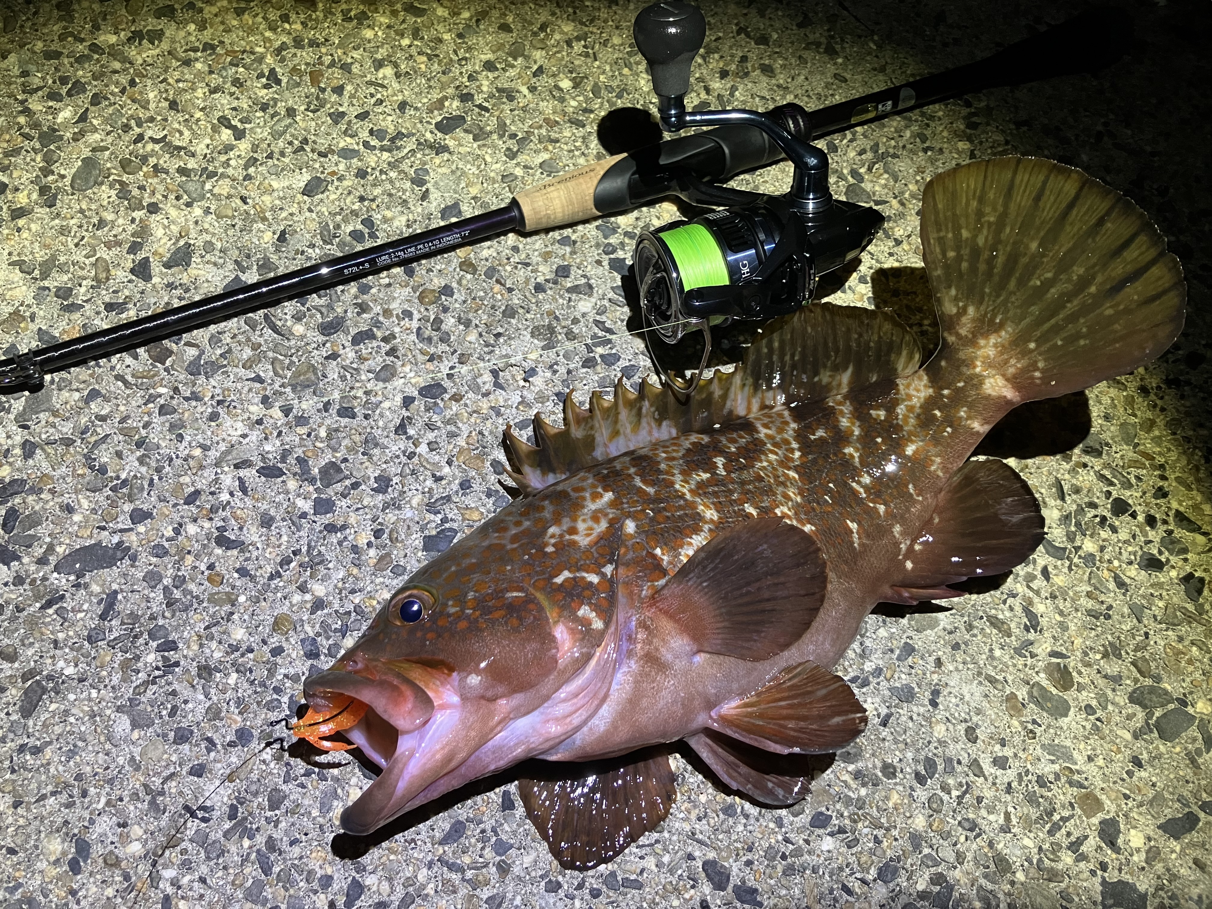 上がってきたのは40センチの中型アコウ!久々に釣れて嬉しいですね笑