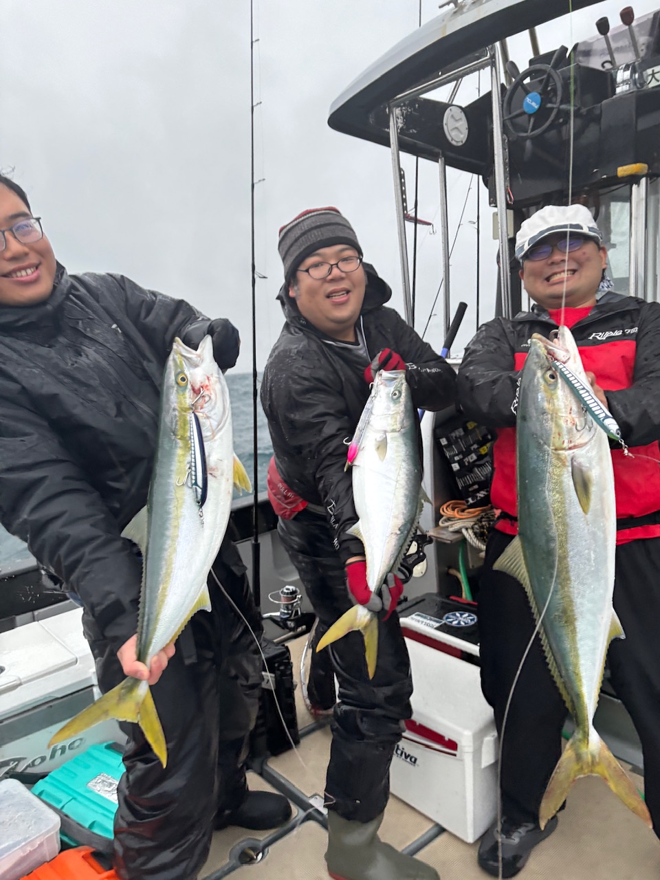 去年よりずっと行きたかった念願のブリトップに行って来ました♪お世話になったのは浜名湖出船のエクストリームさんです。この日は朝から雨予報で雨が上がると爆風予報で早上がりも確定というタフコンディション。そんな中での出船でした。朝イチ本命のポイントに到着。見様見真似でやっていると四日市店の村瀬くんにヒット!その後自分にも待望のヒット!水面爆発はアドレナリンでまくりですね!慎重にやり取りして上がってきたのはワラサクラス!嬉しい一匹でした♪ヒットルアーはヤマリアさんのラピード!この釣りにはかかせませんね。やり取りしている間に当店内藤くんにもヒット!こっちは本日最大となったブリクラス!トリプルヒットでした。その後も釣れ続けますが自分にはバイトがありましたが掛からずでした。初めてと言うこともあり、色々難しさを感じましたがまた行きたいと思います!