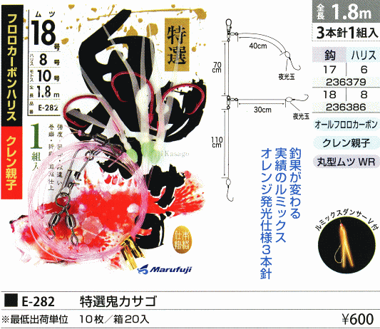 シブい時ほど、ナチュラルに余計な物を付けない・余計な動きはさせない!と感じ仕掛をマルフジさんの「特選オニカサゴ 3本針」に!