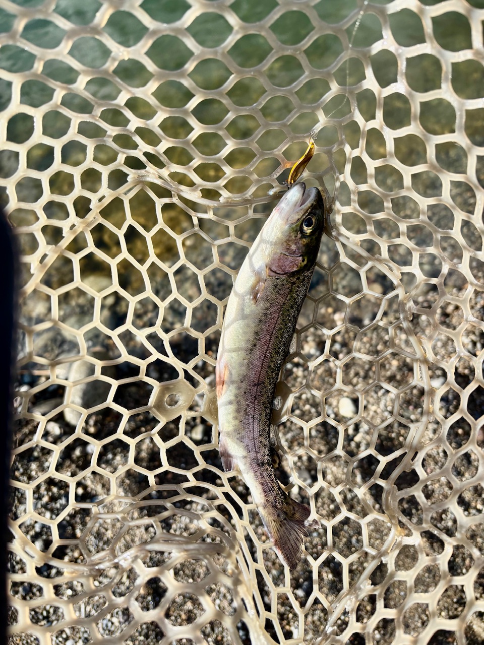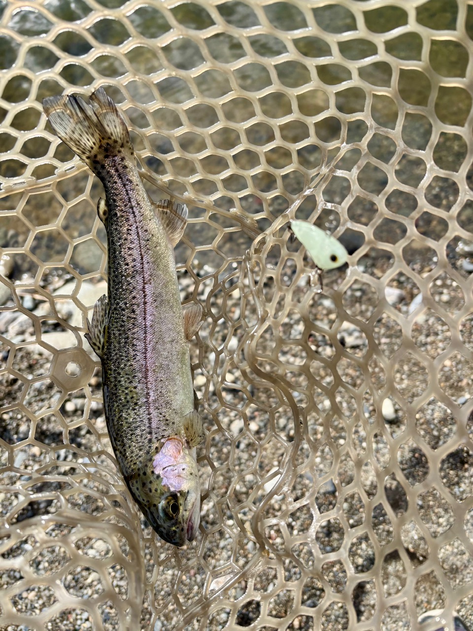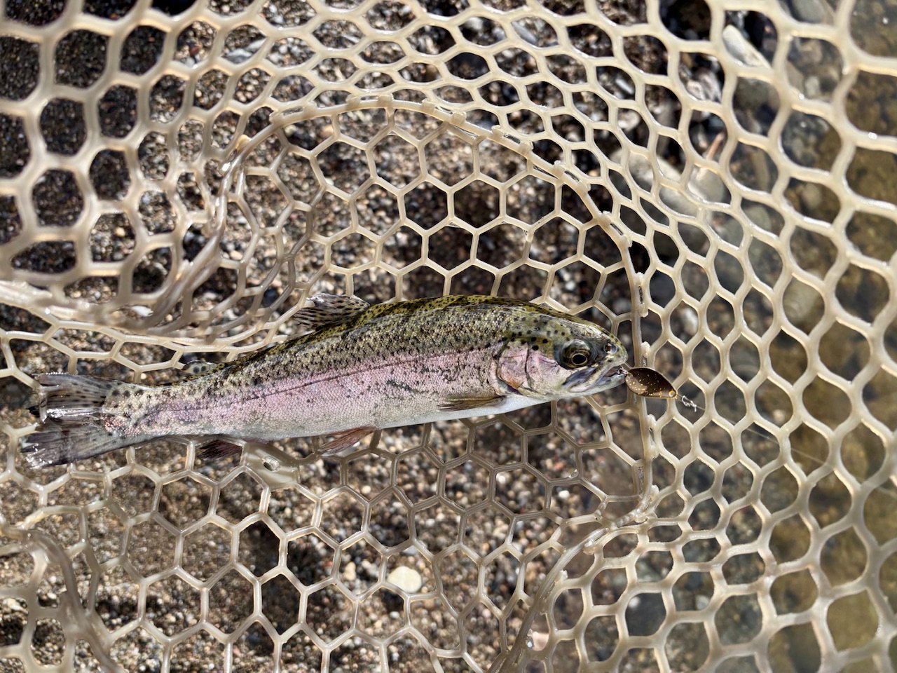 根尾川管理釣り場に行って来ました。8時30分から受付で釣りは9時から16時までです。真ん中の池の噴水の横に入りました。スタートから10数匹はオレ金で釣れました。それから徐々に反応が鈍くなり、クランクなどのプラグとスプーンをローテーションして釣りました。14時くらいから魚の活性がよくなりました。ボトムのスプーンにこの日は反応してくれませんでしたが、ティモンのちびタップダンサーのソリッドグローで連発、スプーンはフォレストのファクター1.8gのかみつけペレットが特に良くなりました。16時まで表層のスプーンや、トップのプラグで楽しみました。