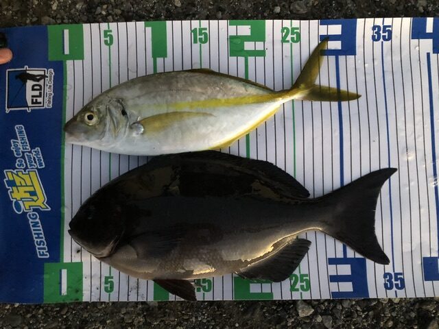 口太が釣れたら良いな!!と思ってましたが釣れるのはシマアジ\(^^)/しかも、大きいのだと30センチ程ありました。