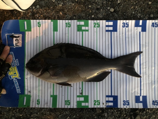 下潮になったタイミングでウキが沈み合わせて数分やり取りし、あと少しで上がってくる所でハリス切れ(T ^ T)良いサイズだと思うだけどな…(T ^ T)同じ所を流すと、またバチバチとあたり!!今度こそ…と慎重に、ハリスを擦られない様に頑張ると……極太のイスズミ(T ^ T)その後は、やっと尾長の30センチ程を取り込み大荒れになったので終了しました。