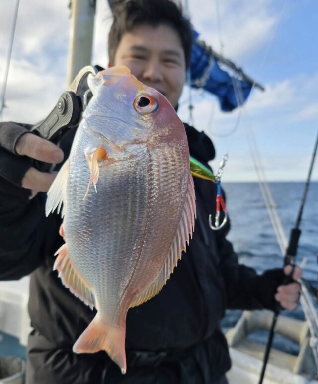 船長によると水がクリアーな時はジグは喰いずらいとの事。タイラバをされてた同船者様はアマダイを釣ってました!