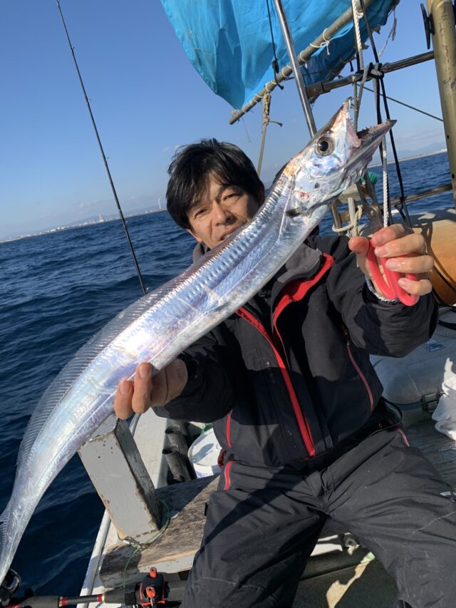 青鬼丸さんにお世話になり、白アマダイ、タチウオ釣りに行きました。アマダイは活性が低いのか当たらず船中1本。タチウオに変更。棚合わせをしてポイントへ。最初は天秤からやりました。1投目からヒット。しかしワイヤーをつけた針が切られました。デカいのがいる!!その後も切られまくり、バラシ連発。睡眠不足で何年かぶりに船酔いしてダウン。指3本を2匹釣ってテンヤへ変更。船酔いしながらなんとか釣りをしましたが全く集中できず数が伸びませんでしたが指5.5本を釣って血抜き中に逃げられてしまいました。。。心折れて指4本までを何匹か追加して終了。船酔いしなかった皆さんはたくさん釣ってました。青鬼丸さんでタチウオまだまだ釣れますよ