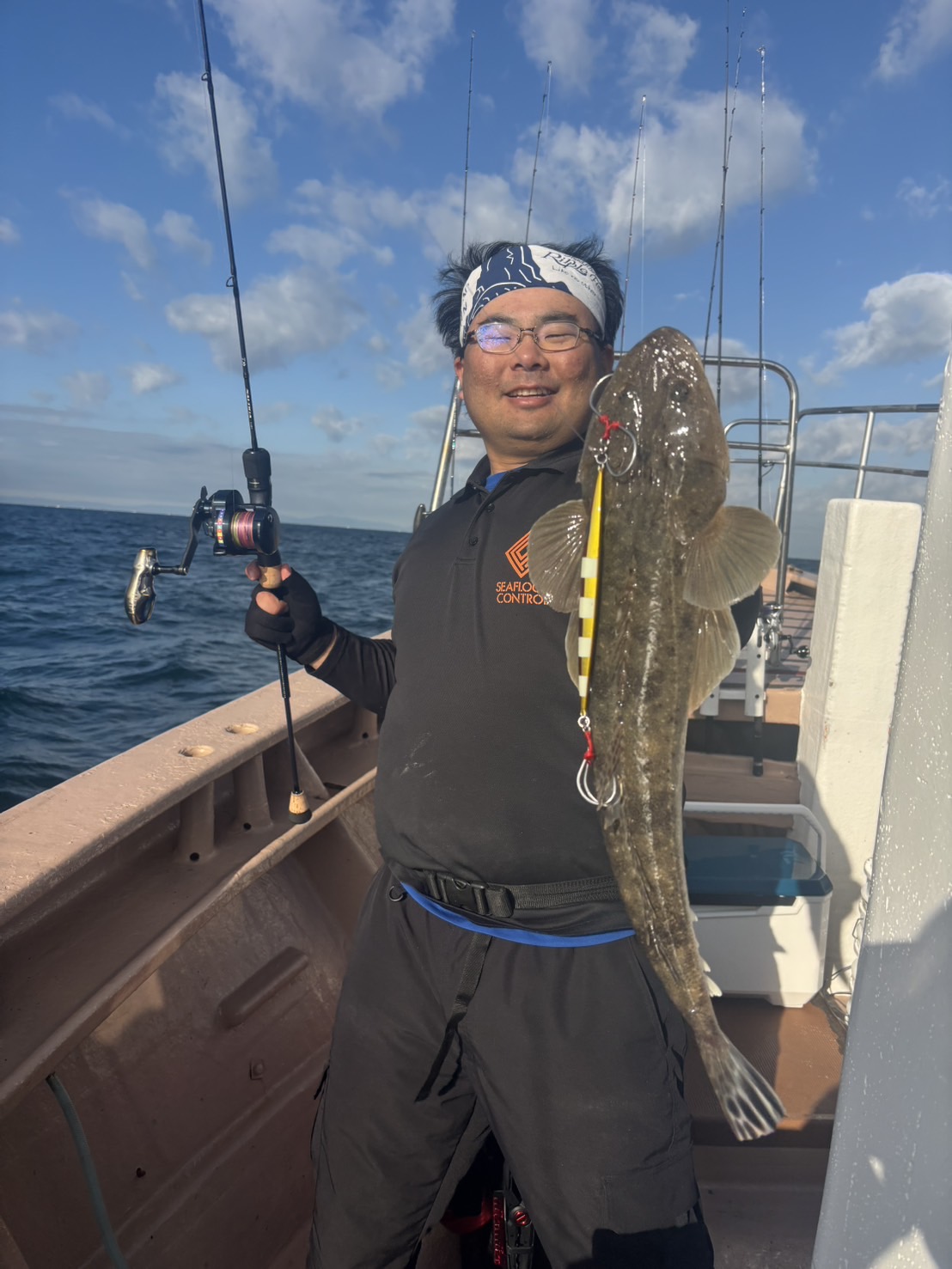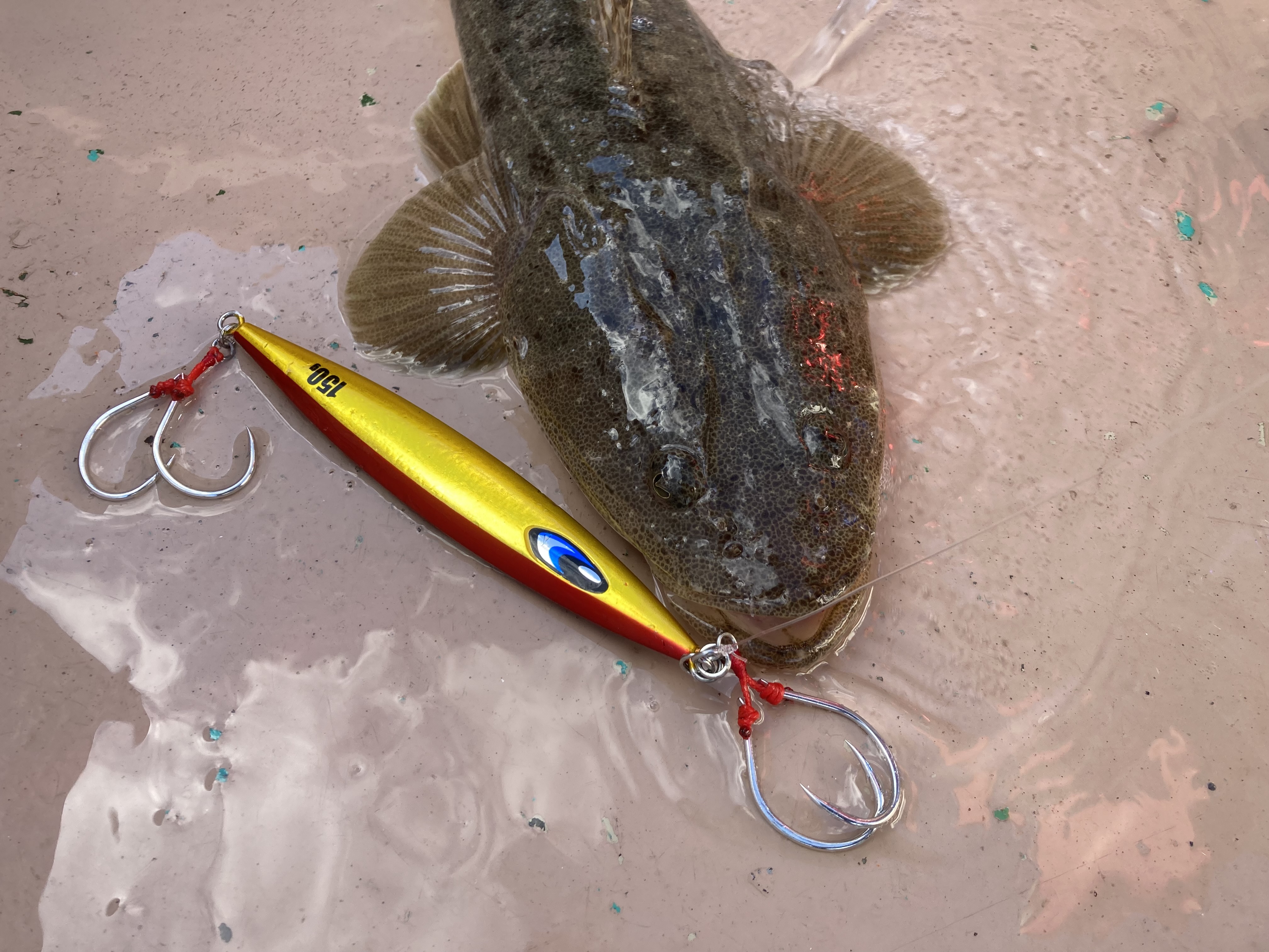 40mラインに移動して73チョッパー150gをボトムネチネチさせて45cmくらいのマゴチをキャッチ!