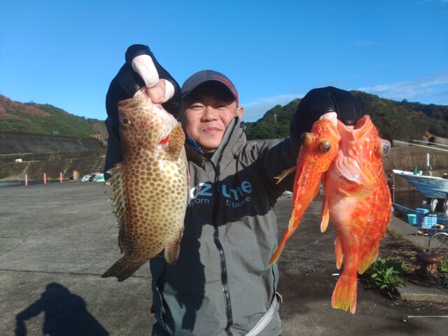 横で釣っているG先生は30㎝オーバーのカワハギやオニカサゴを連発!