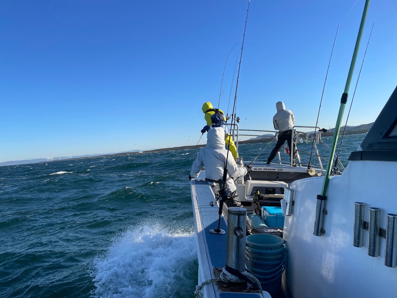 社内ジギング大会に参加してきました!この日は風が強く最初は水深30m前後のポイントからスタート。