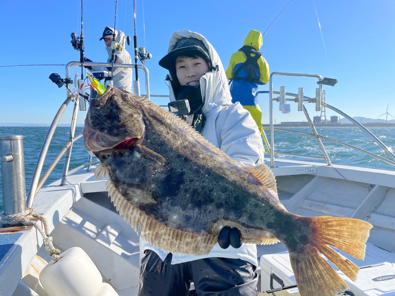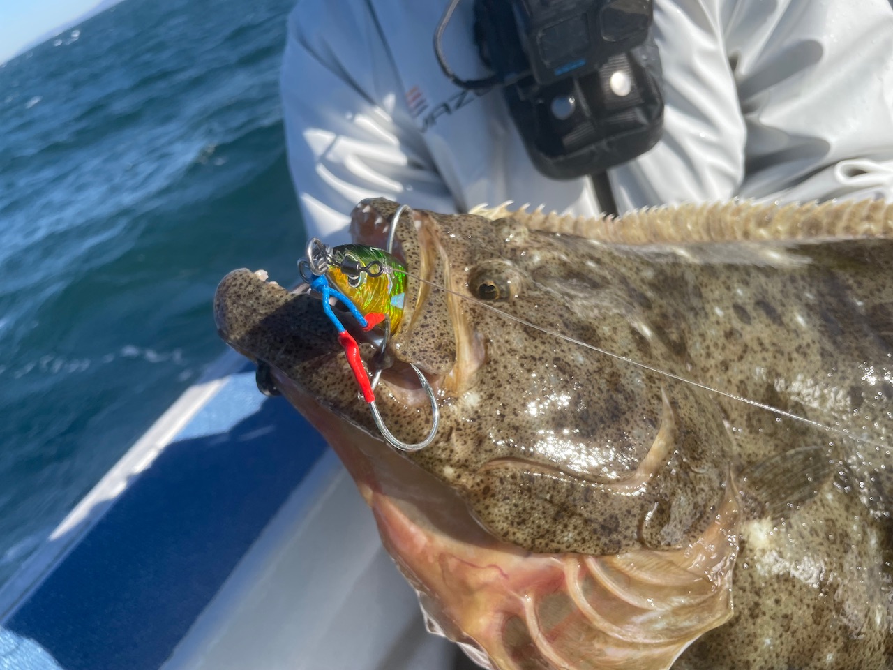 そんな中豊橋店福手君にヒット!上がってきたのは75cmの大型ヒラメ!持っている男は違う!ヒットルアーはクレイジーオーシャンのSグライドでした!