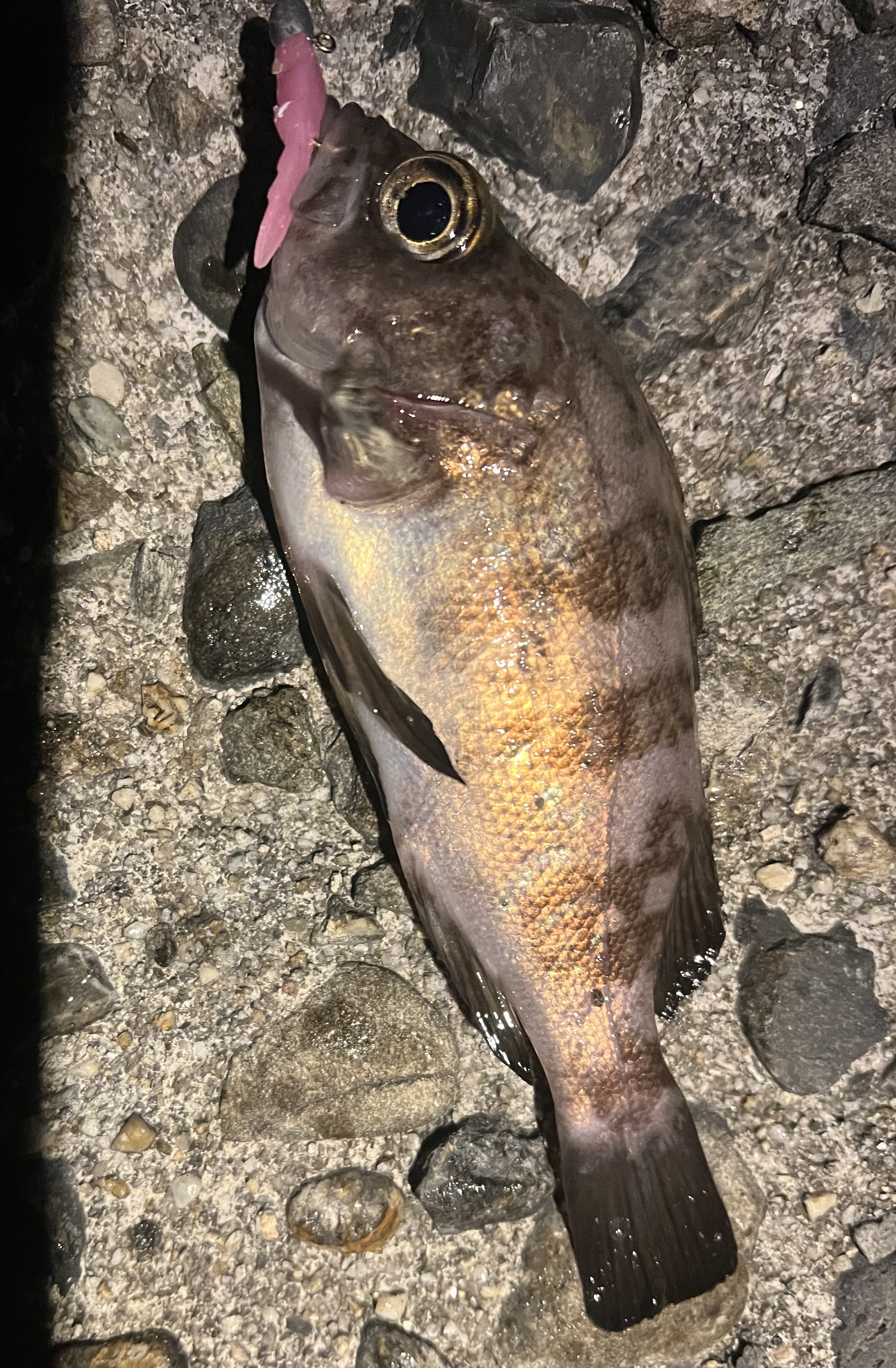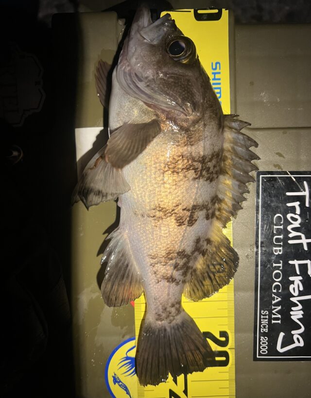 この日は久しぶりにメバリングに行ってきました。風速は8m程でとても釣りづらい状況。極力風裏になるポイントに入り1.5gのジグヘッドからスタートするも反応なし。産卵後のアミパターンの可能性を考慮してティクト様のメバスタ1.0gにエーテル様のブループを使用。潮にあてながらゆっくりとリトリーブしていくと、もぞっとしたあたり!狙い通りのメバルでした。予想通り産卵後の個体で全体的に活性は低そうだったので同じパターンでカラーのみ変えて行くと、こちらももゾッとしたアタリ!21cmの良型が釣れてくれました!今回もリリースして最後にカサゴを釣り、寒すぎたので納竿。まだまだメバリングは楽しめそうです!