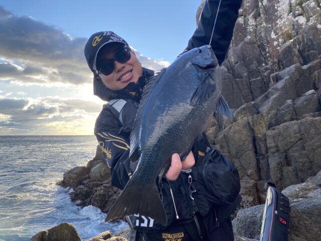 隣の磯でグレを複数匹釣っていた方に話を聞くと、棚8ヒロ〜9ヒロで釣れたそうです!急激な水温低下で魚が深場に行ってしまったかもとのこと。