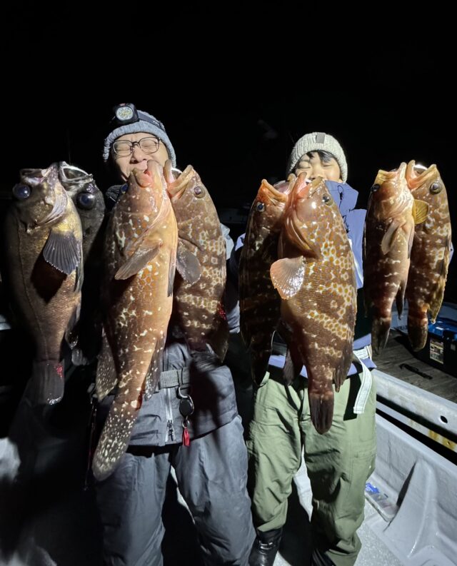 当店横井と伊勢湾マリーナ出船のガイド船りトータルフィッシングガイドサービス”マスターズ”様にお世話になり、キジハタ&メバルのボートロックゲームへ行ってきました。伊勢湾フィッシングガイド様から名前が変わりましたが、伊勢湾マリーナから出船されます。まずはキジハタ狙いから!!デコイのスイッチヘッド14g+キロフックワイドの1番にドリームアップ様のドリザリー2.4インチ横井監修カラー「アカザリー」を使用しました。ボトムをとって起伏のある場所でリフト&フォールしていると早速カサゴやキジハタが釣れました。当店横井もしっかりキジハタを連チャンでキャッチ!その後メバル狙いへ。私はヤリエのメバリー早掛け1.3~1.5gとメバル職人ストローテールクラブ2インチを使用しました。明暗にキャスト後、テンションフォールで5m程落としている間にヒットするシーンが多くありました。アタリも多くたいへん楽しめました。年明けからの初釣りにもうってつけです!インスタグラムアカウントcapt.mskkにてDMまたは080-3075-0127ご連絡でご予約できますので是非挑戦してみてください!!