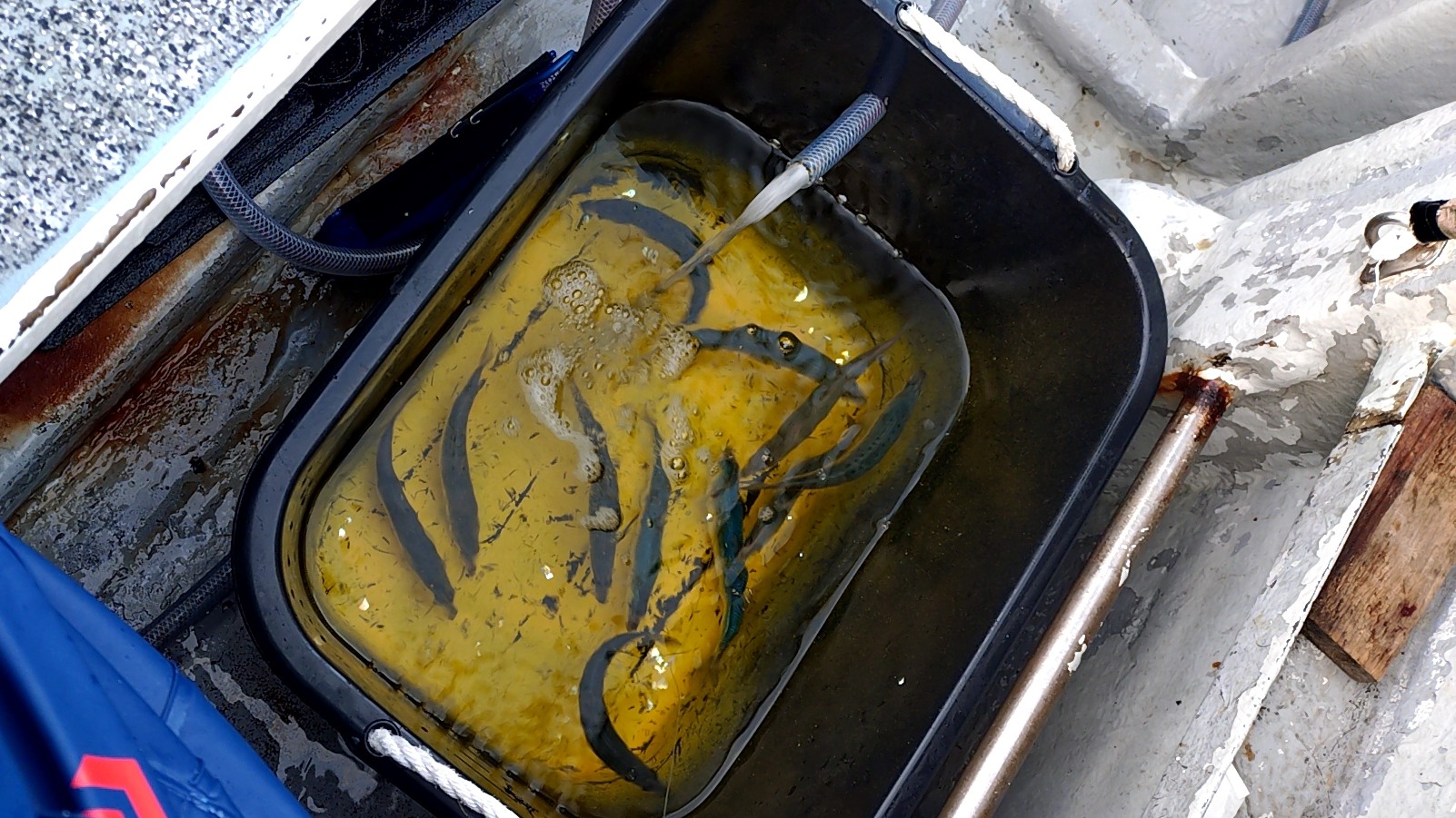 竿が一気に入ったと思ったタイミングでアワせましたが、スッポ抜け… もうエサが無いだろうと思って上げてみると傷だらけですがまだ生きたままイワシがついていました。結果論ですがアワセの後もう少し上げずに様子を見るべきだった気がします…