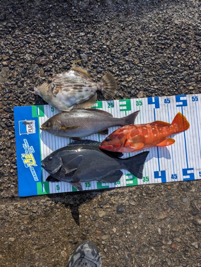 2025年釣り納めに白浦の磯へ行ってきました。凪も良く三ツ石に乗れたので期待大!朝7時より釣り開始。やけに鳥が多くナブラもしているので海の活性も良い様子。ウキ下2ヒロ半からスタート一投目から大型のグレっぽいアタリ!が残念ながら針外れ。気を取り直し打ち返すがエサ取りのアタリが続き苦戦気味。9時過ぎに良型のカワハギがヒット。嬉しい外道なのでキープ。さらにアカハタ、イサキと嬉しい外道が続くが肝心のグレが来ない。少しウキ下を深くして探っているとパラパラっと糸を引き出していくアタリ。アワセてみるとグレの引き。慎重に上げてくると40センチ弱のグレ。これにて2025年の釣りは終了となり無事釣り納めになりました。