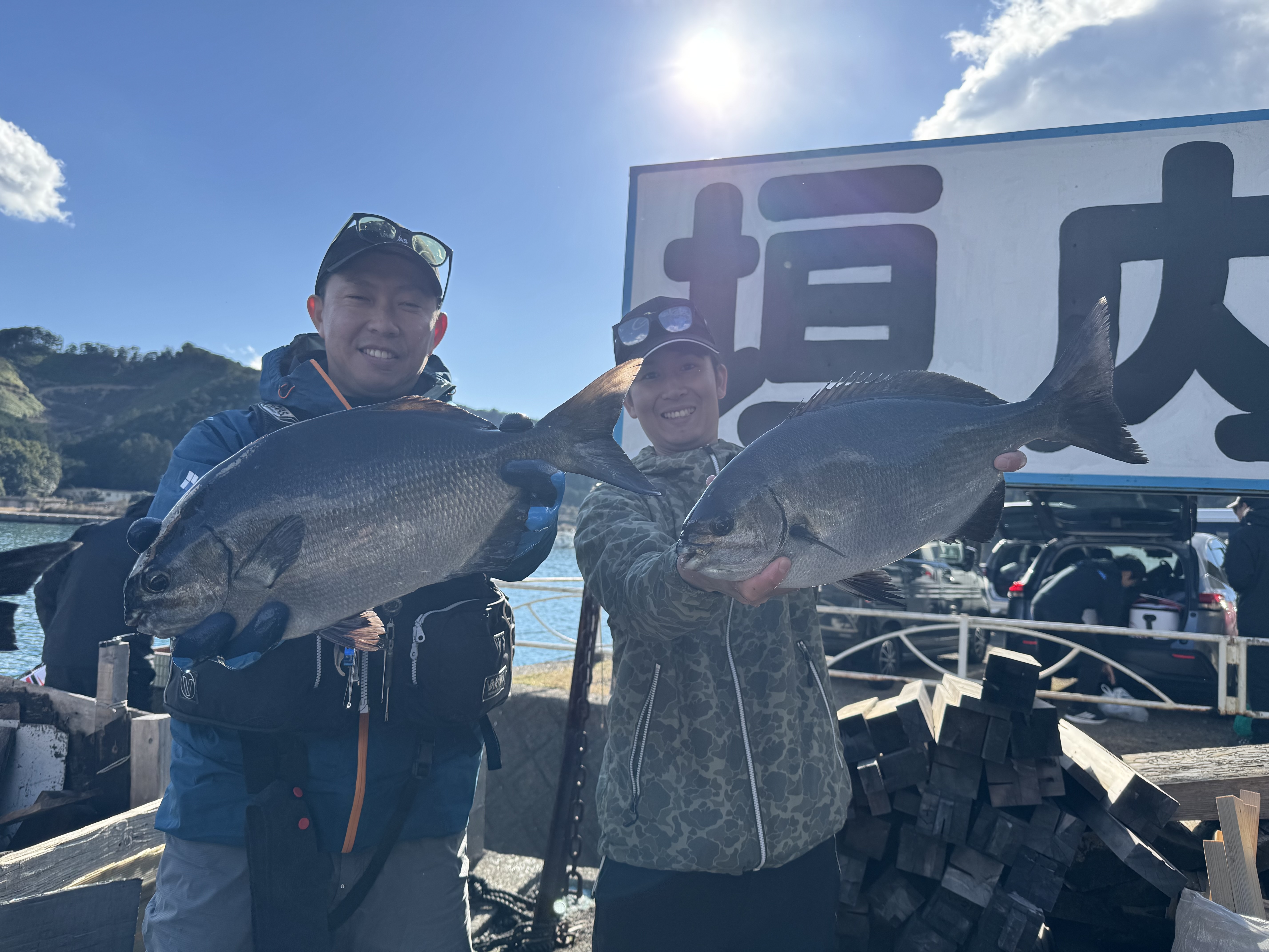 くじ引きて上がったのは、オケ島。高場に釣座を構え釣スタート!潮は左から右にゆっくりと流れます。餌がなくなる棚を探しながら狙うもアタリが出にくい状況。立ち位置や投げるポイントを変えていくとようやく30センチクラスをキャッチ。その後同サイズを数枚釣るもサイズアップも難しく、流れが右に強くなり水道に流れ釣りづらい。これはダメと移動するも5人で乗っていた為行けそうなところが根まみれ。切れても良い覚悟で遠投でさぐるりラインを張り気味にするとモゾっと微妙なアタリ!合わせると中々の引き上がって来たのは40オーバーのグレ!まだ釣れると打ち返すもの潮が緩み風が強くなりエサも取られない。時間もなくなりラスト一投!よそ見しているとラインが走り釣れたのはイスズミ!洒落で持ち帰ると、なんと他魚の部3位でした!グレの大物も同立4位と検討!久しぶりに楽しい釣りが出来ました!船長、大会開催者様ありがとうございました。