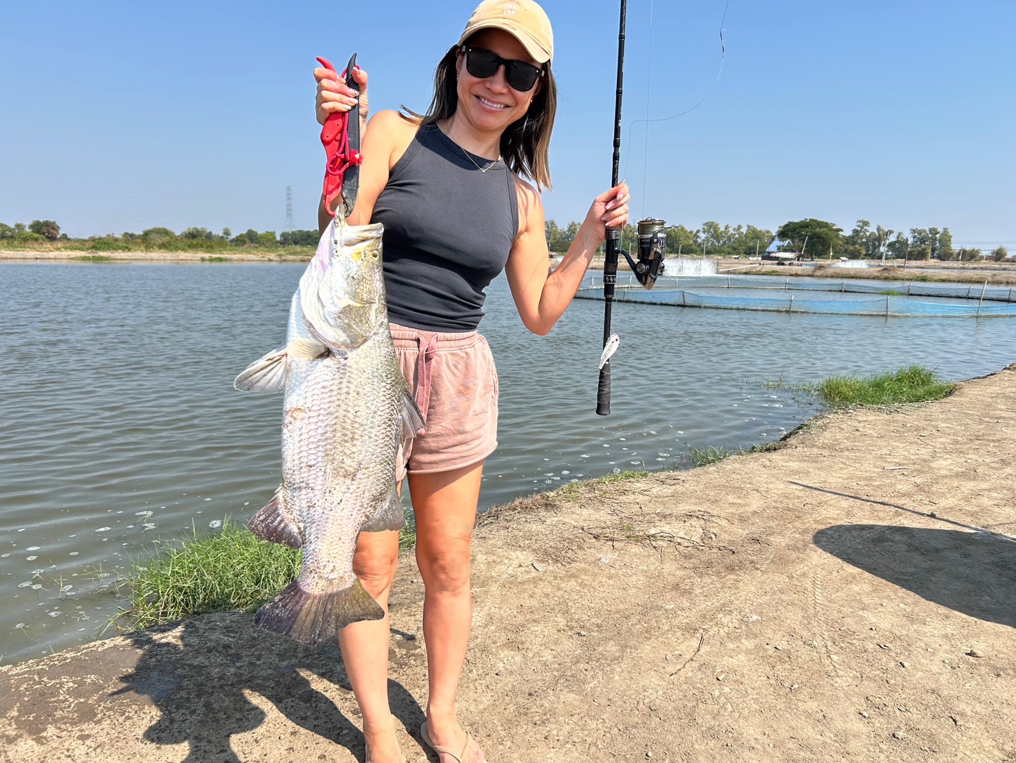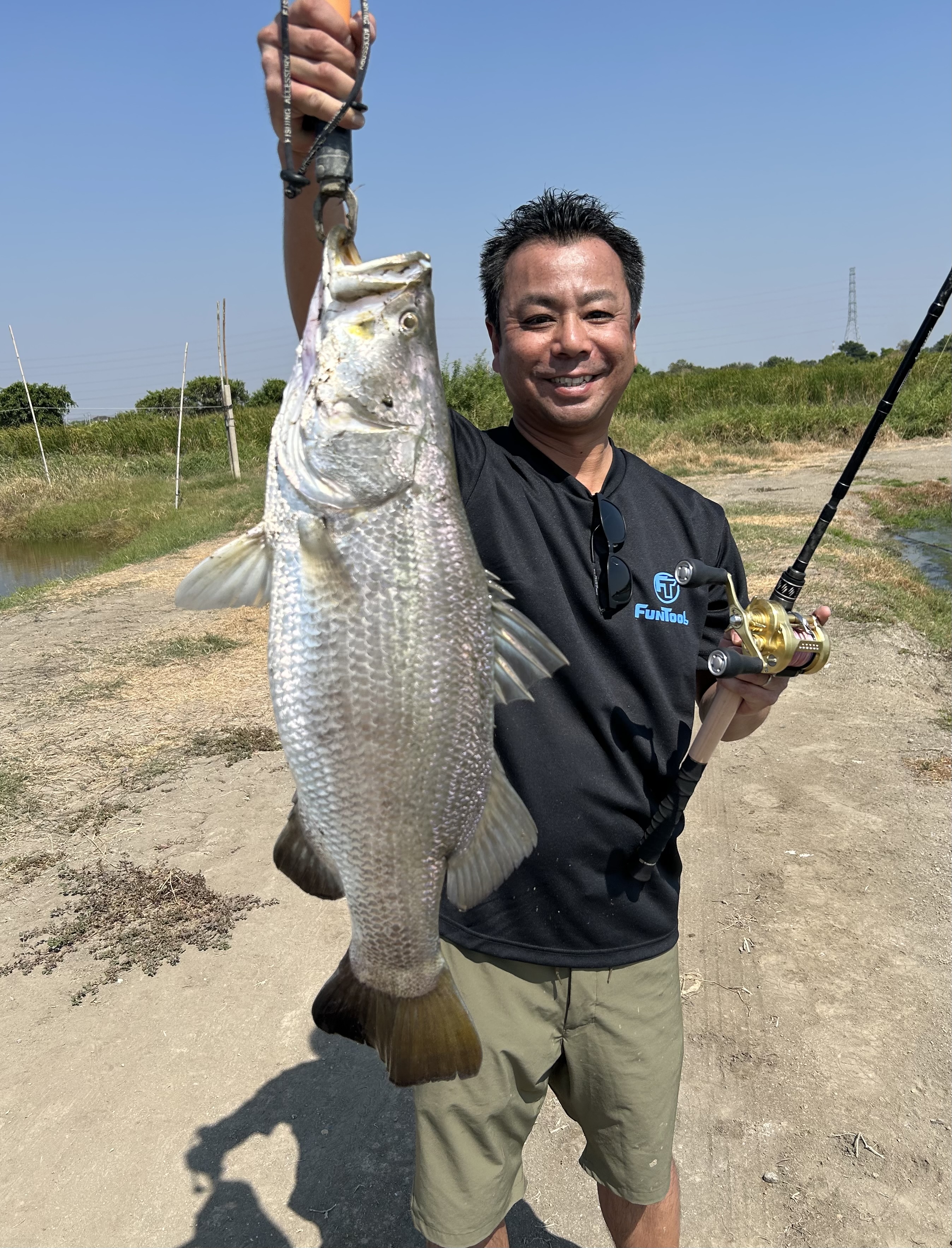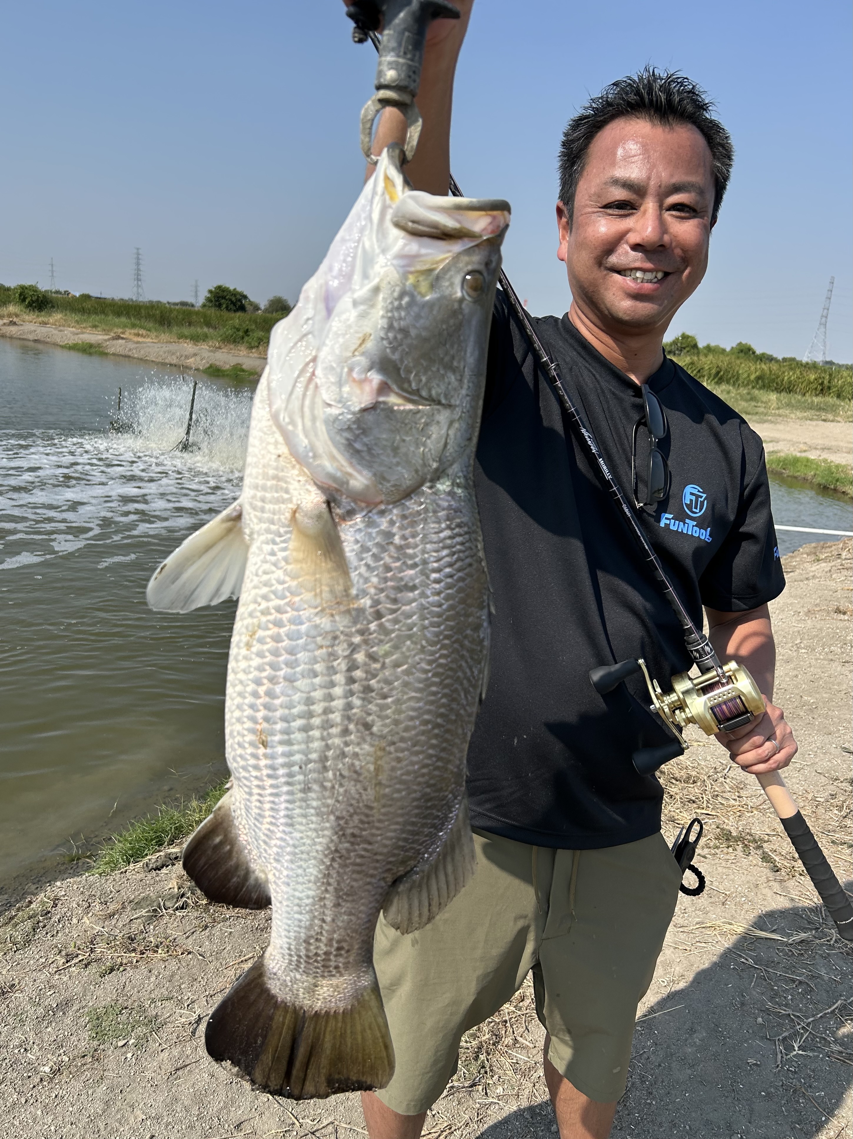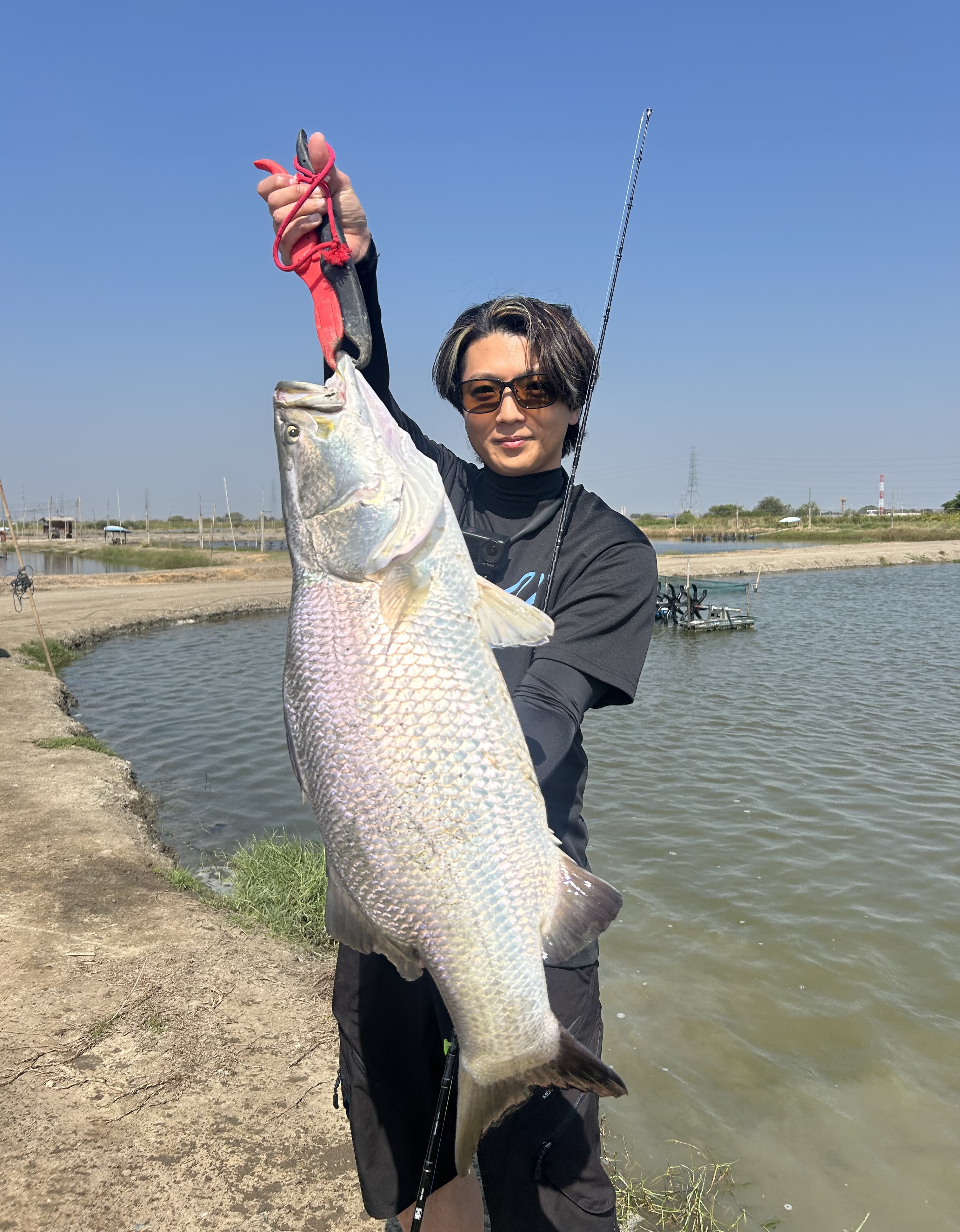 今年も来ました。タイ🇹🇭の怪魚釣り堀。1日目は昨年大型のバラマンディが爆釣したブンマーポンド。1人4000バーツ。日本円で1人2万円。メンバーは妻とクレイジーオーシャンサポートメンバーの土井さん。まずは土井さんの運転で池に向かう途中ケンタッキーで朝ごはん。ブンマーポンドに到着後、お金は先払いで開始。昨年爆釣したバスデイ シュガーバイブを妻の竿に付けキャスト。しばらくすると妻は1年振りのバラマンディを楽しそうにファイト!土井さんも準備が終わりキャストすると連発!!ブンマーポンドのバラマンディはパターンを見つければ80cm以上が連発します。さすが土井さん。私は今回はジョイクロで釣りたくデカいルアーで始めましたが、今年は小さ目のルアーに好反応。結局妻と同じシュガーバイブで1日を通しアタリを出す事ができました。釣果は30回ぐらい掛けてやり取りしたのですが、バラマンディの激しいジャンプやフックが伸びたり、バーブレの為テンションが抜けたりで釣り上げたのはわずか10匹ちょっとでした。バラマンディの激しいジャンプは何度バラしても見たくなる、最高にエキサイティングな魚でした。