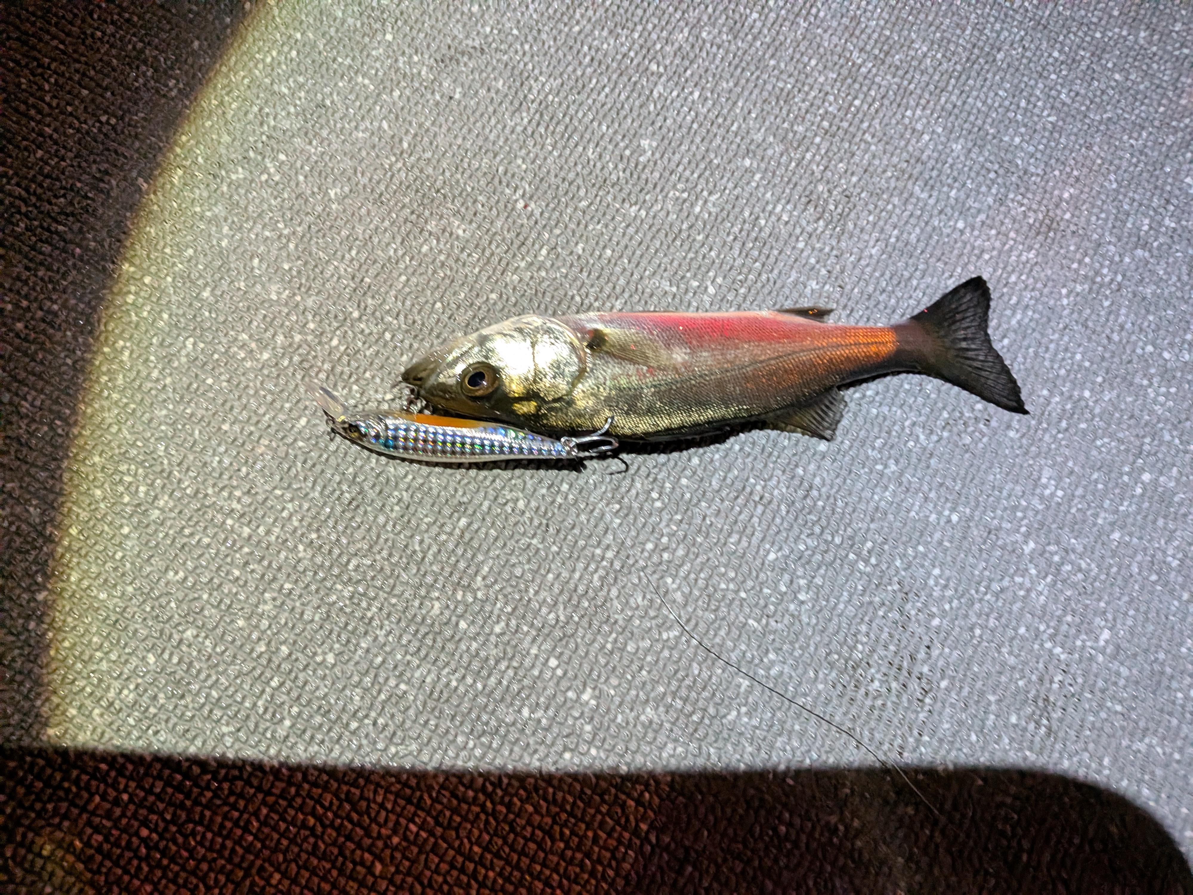 当店常連様と伊勢湾マリーナ出船のトータルフィッシングガイドサービスマスターズ様にお世話になり、インショアゲームを楽しんできました!厳寒期ではシーバスからの距離が遠いですがボートならめちゃ近い!ボイルボコボコでセイゴクラスは入れ喰い状態でした!ソナーはシーバスの反応出まくり状態です!40センチクラスも釣れて時折港湾バチも抜けているのを目視!DUO様のシーク85やラッキークラフト様のビーフリーズ85S、メガバス様のXナナハンSWが効果的に釣れていました!セイゴクラスは小ぶりなミノーがオススメです。ビーフリーズ65やもっと小さなライトクラスミノーだと入れ喰いかと思います。とりあえず入れ喰いを楽しみたい方には是非!インショアゲームを!マスターズ様増谷船長も気さくな船長さんです。これからチヌジキシーズンで予約も承り始めています。ご予約はインスタグラムのアカウントcapt.mskkにDMまたは08030750127にご予約下さい。おまちしております!とのことです。