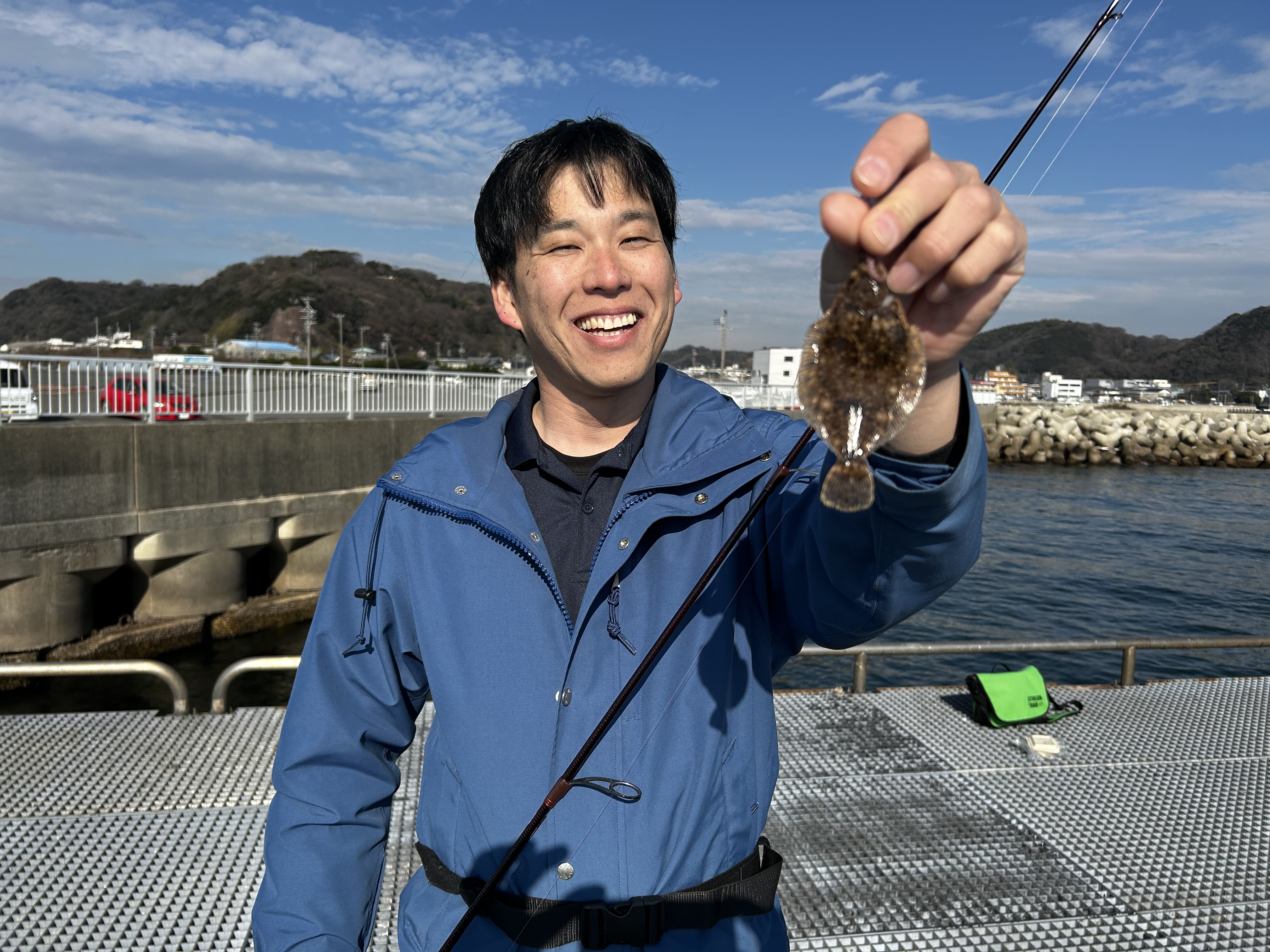 豊浜漁港の清掃の後、軽く竿を出すと小さなカレイがヒット。