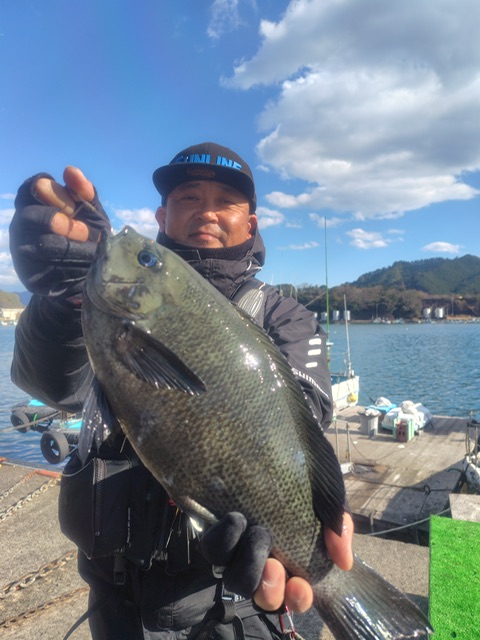 連日好釣果継続中の海野の磯、先日の社内大会では型でも数でも残念ながら中途半端な結果でしたので、リベンジという名目で磯釣に行って来ました。マツザキの2番に渡礁、しかし9時頃に1回ウキが入っただけで全く反応が無い…苦行の様な時間が続き気が付けば11時…右前から当て気味だった潮が少し左からの流れに変化した時に待望のアタリ!40.5cmの口太でした!続けてイガミ、で、納竿。激渋でしたが40越えてたのでリベンジ達成という事で。