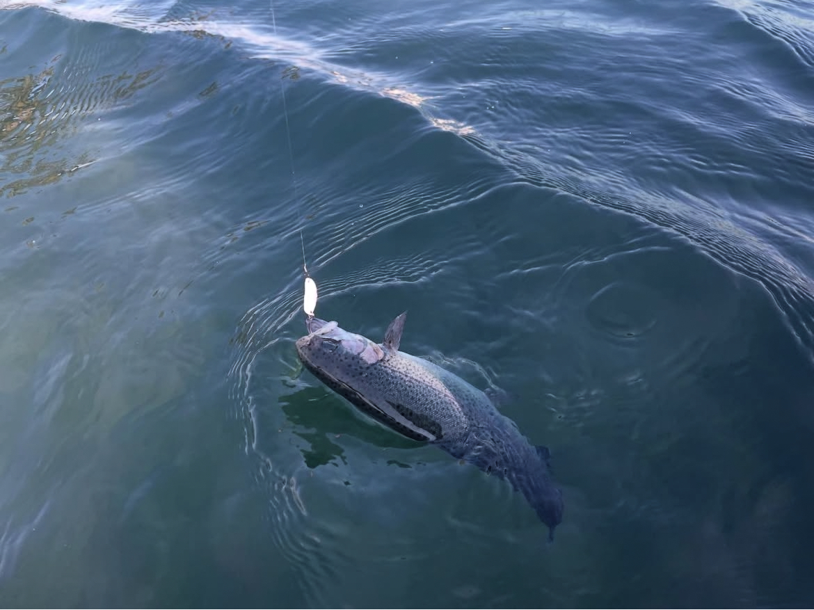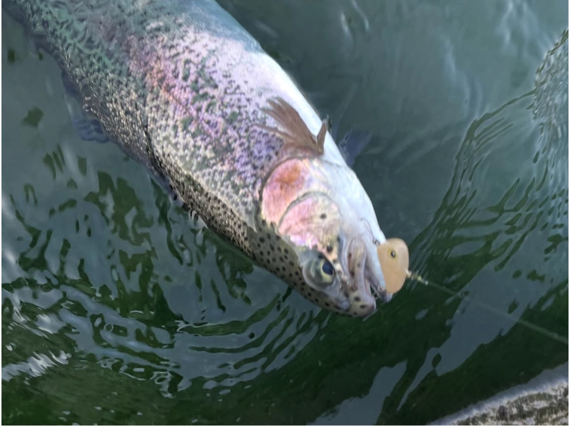前半は爆風の中での釣り。マイクロスプーンが全然反応しないので、1gオーバーのスプーンメイン。アストラルやバンナ、サーヴァントスピア、ジキルなどで拾い釣り!レンジが深いのでボトムプラグも試すと高反応!シャインライドやダートラン、タップダンサー等で釣れました!隣の関根くんはタップダンサーで入れ食いでした!
