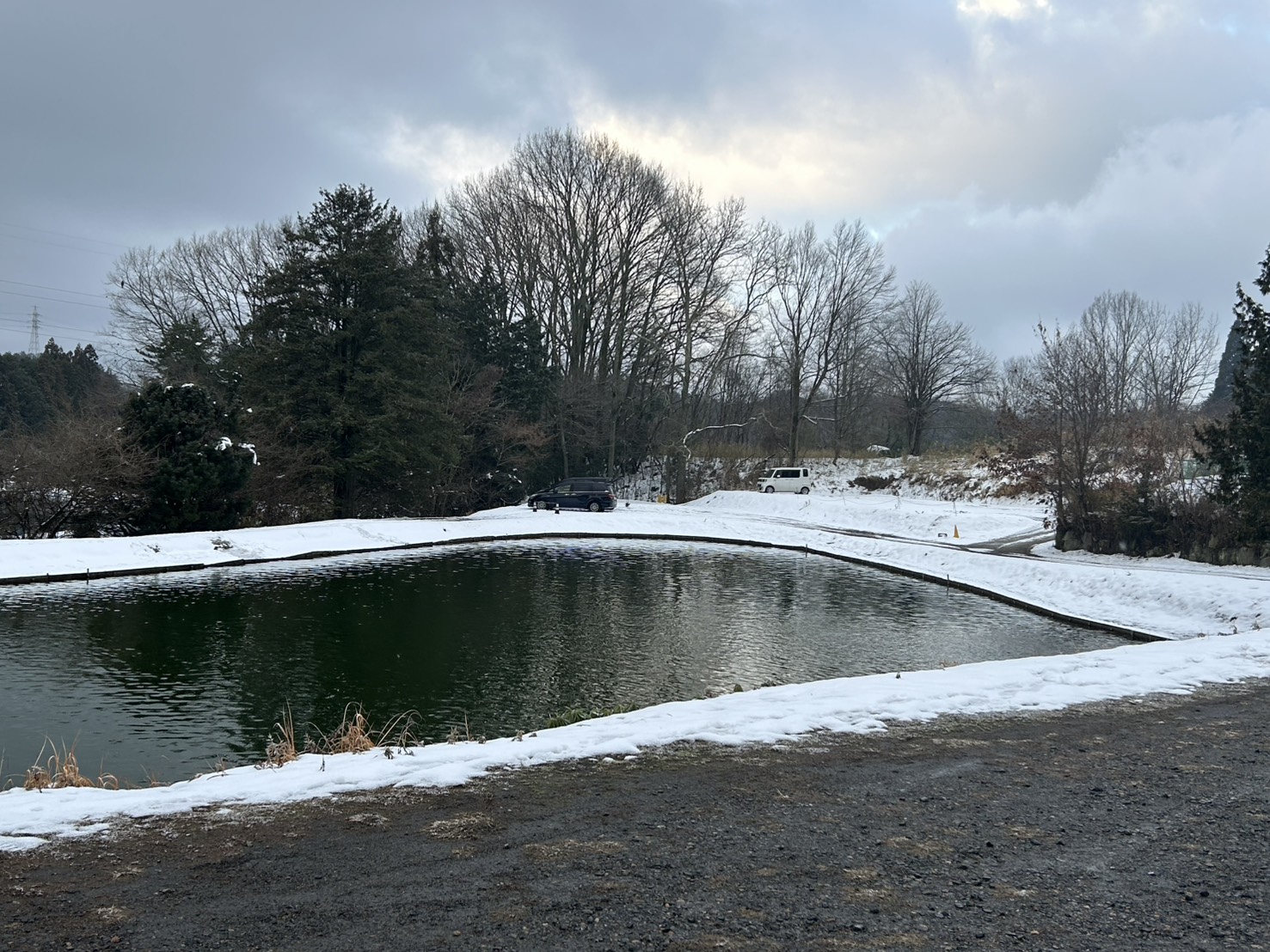 14日岐阜県の瑞浪フィッシングキャンプエリアさんに行ってきました。天気は雪(予報では晴れなのに・・・)道路は積雪はありませんが池は雪景色。初めて釣り場で雪かきをしました。