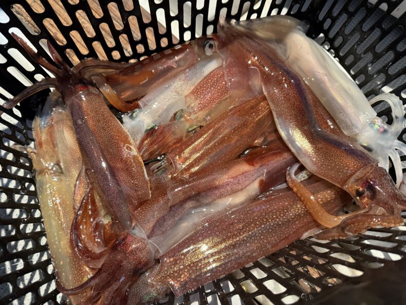 何とかスルメイカ3杯、アカイカ5杯、ヤリイカ 1杯の釣果で有った。
