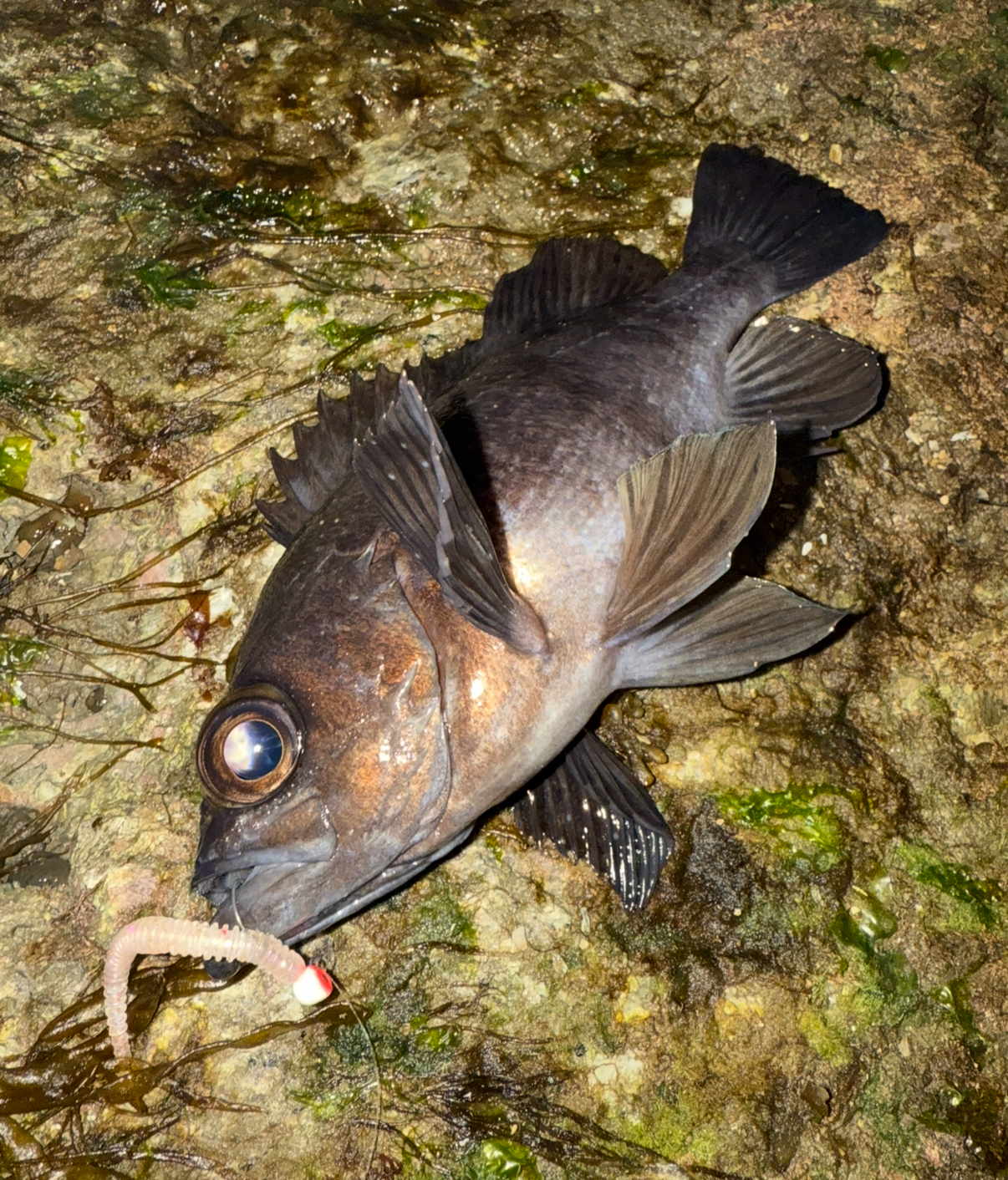 久しぶりにメバリングへ行ってきました。今回は現在の釣り方を教えていただくためにショアソルトチーム佐藤さん、薗田さんとご一緒させていただきました。まずは松阪店でお買い物。アルカジックジャパンの【シャローフリークダイブ】とワームのケイテック【イージーシェイカー2.5】を購入しスタート!フック1.0gをつけ遠投。カウントで沈めていき低速巻き、、だけ!なんどか怪しいあたりのようなものがありましたが半信半疑。。の中しっかりヒット!ダイブが付いているせいか手前にきて走る!しっかり抜きあげ24センチクラス!その後も同型2匹と大満足でした。最終5(オールリリース)で終了!ワームカラーは【シャンパンピンク】でした!楽しい。シャローフリークを使ったつりにハマりそうです。