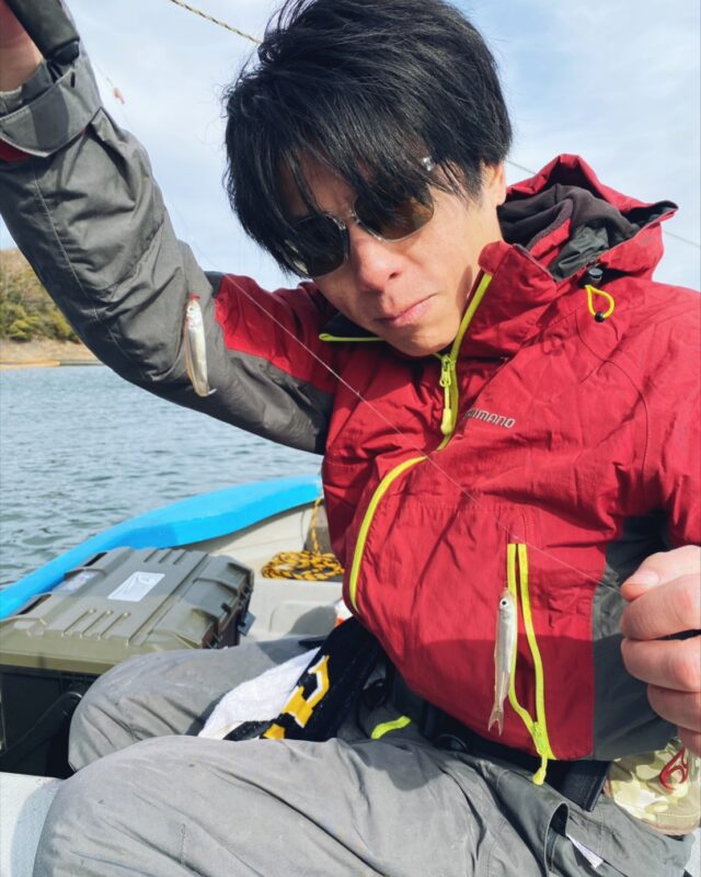 水深10mほどのところで、初めてのアタリ!やっとワカサギを釣り上げるも、連投せず…。