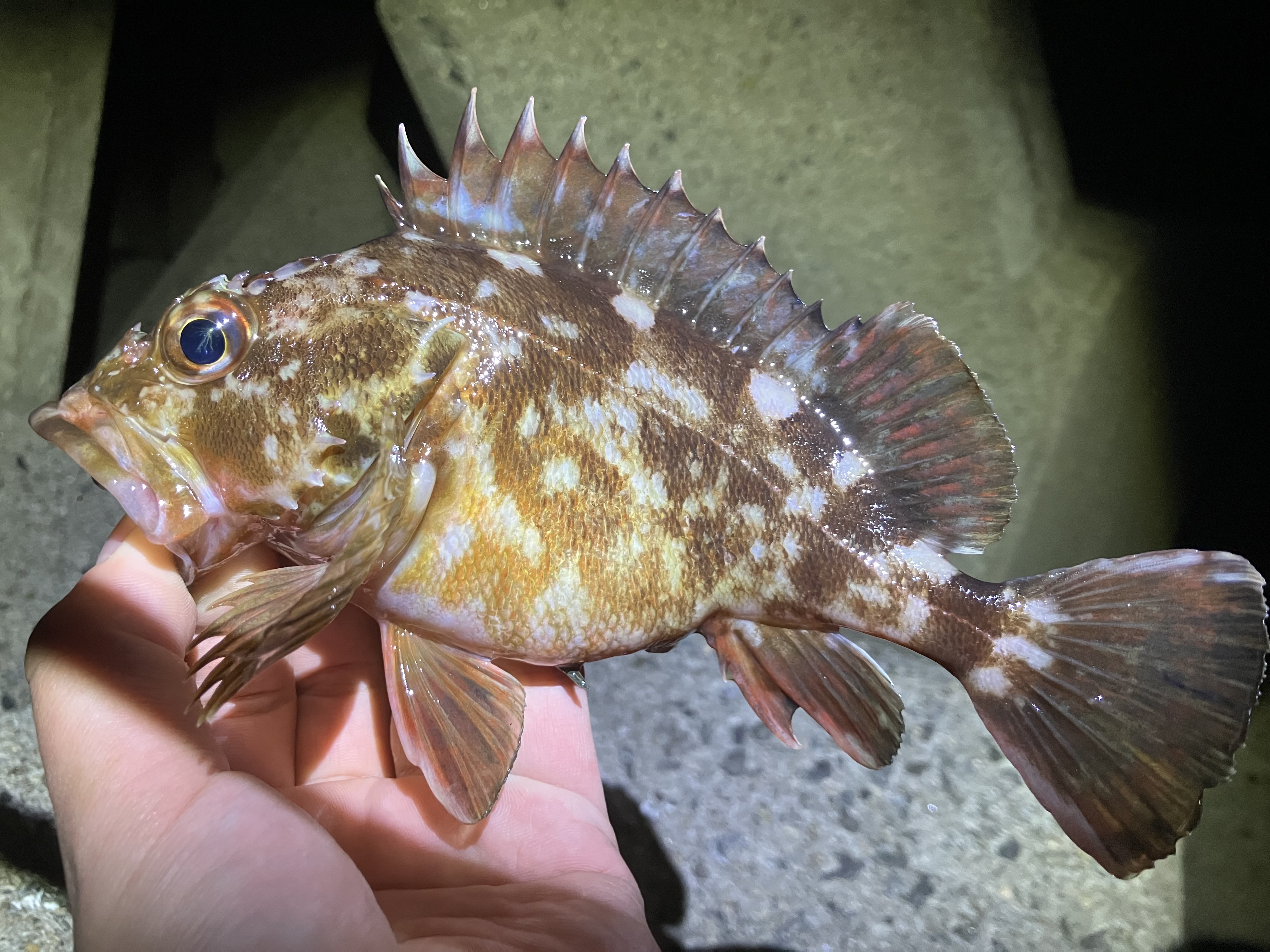 子持ちのカサゴは写真撮影後にすぐリリースしました。子持ちのカサゴが釣れた場合は資源維持のため優しくリリースしてあげてくださいね。