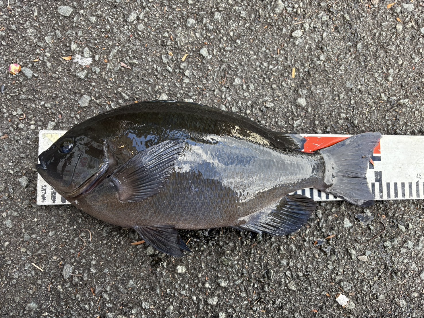 30メートルほど流したところでパラパラと糸が出ていくアタリで42センチの口太グレをキャッチ!